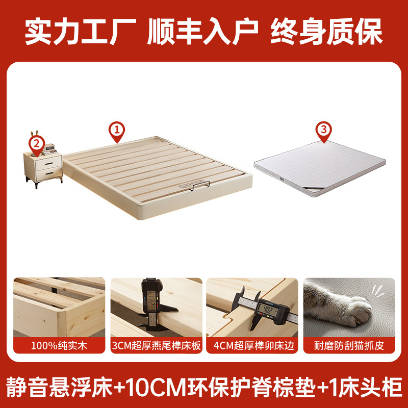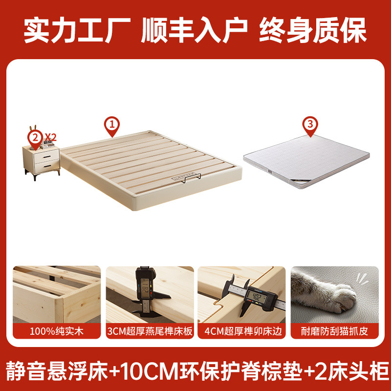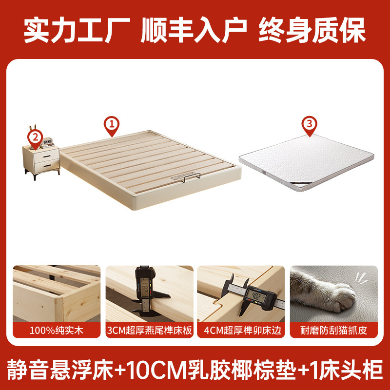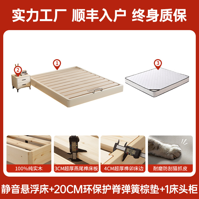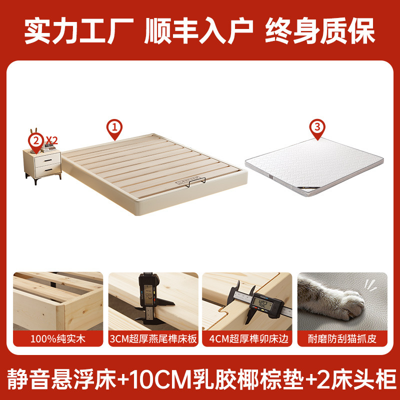 • 사일런트 서스펜션 침대 + 20cm 라텍스 스프링 매트리스 + 침대 옆 탁자 1개
