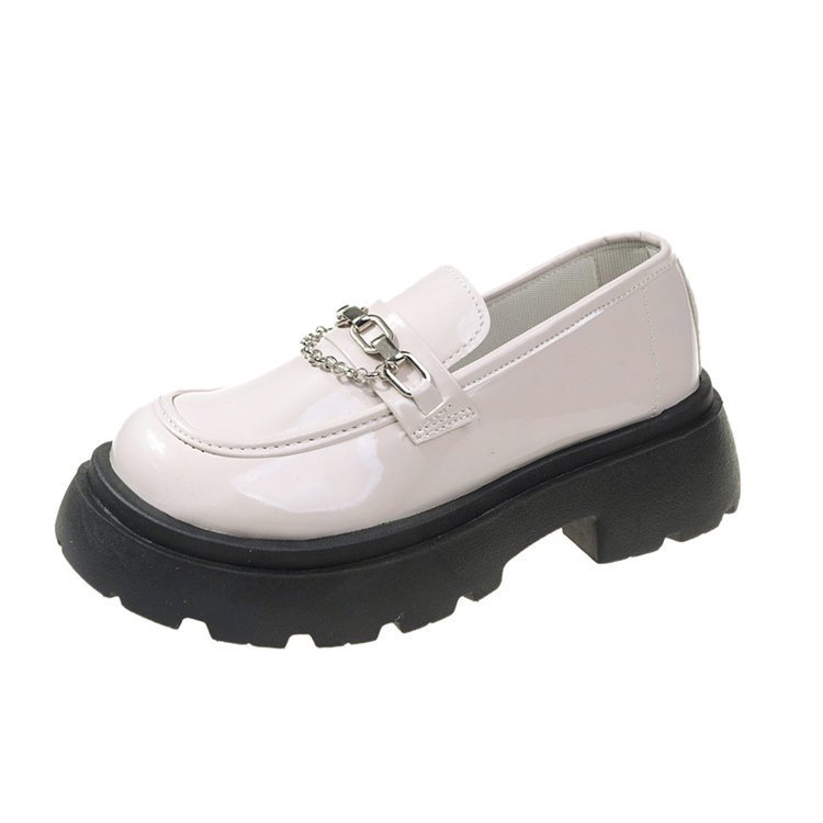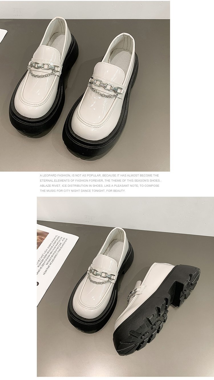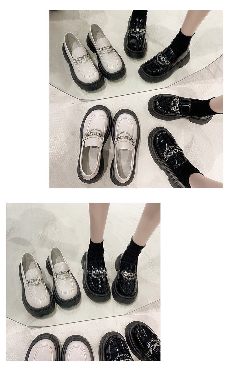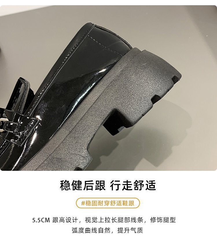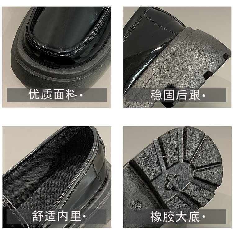 두꺼운 바닥 로퍼 여성의 2024 새로운 라운드 헤드 페달 복고풍 작은 가죽 신발 영국 바람 두꺼운 뒤꿈치 신발 도매