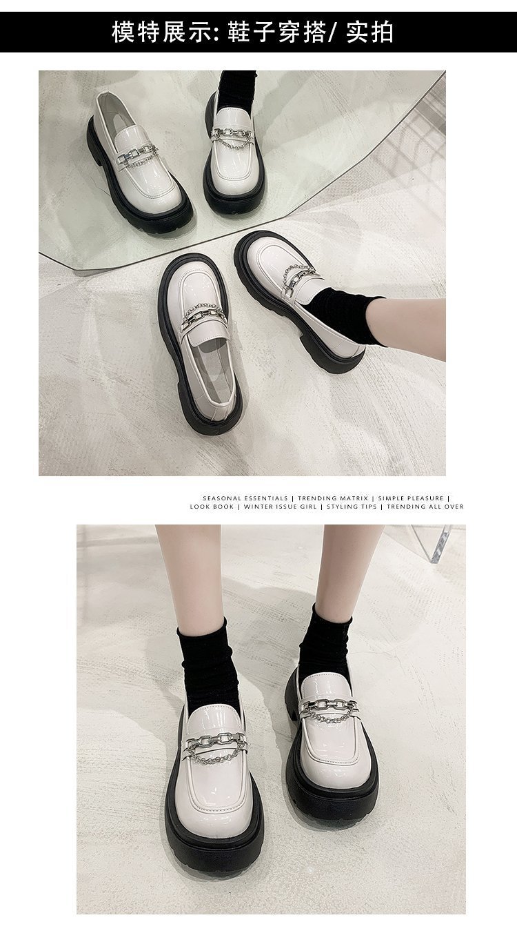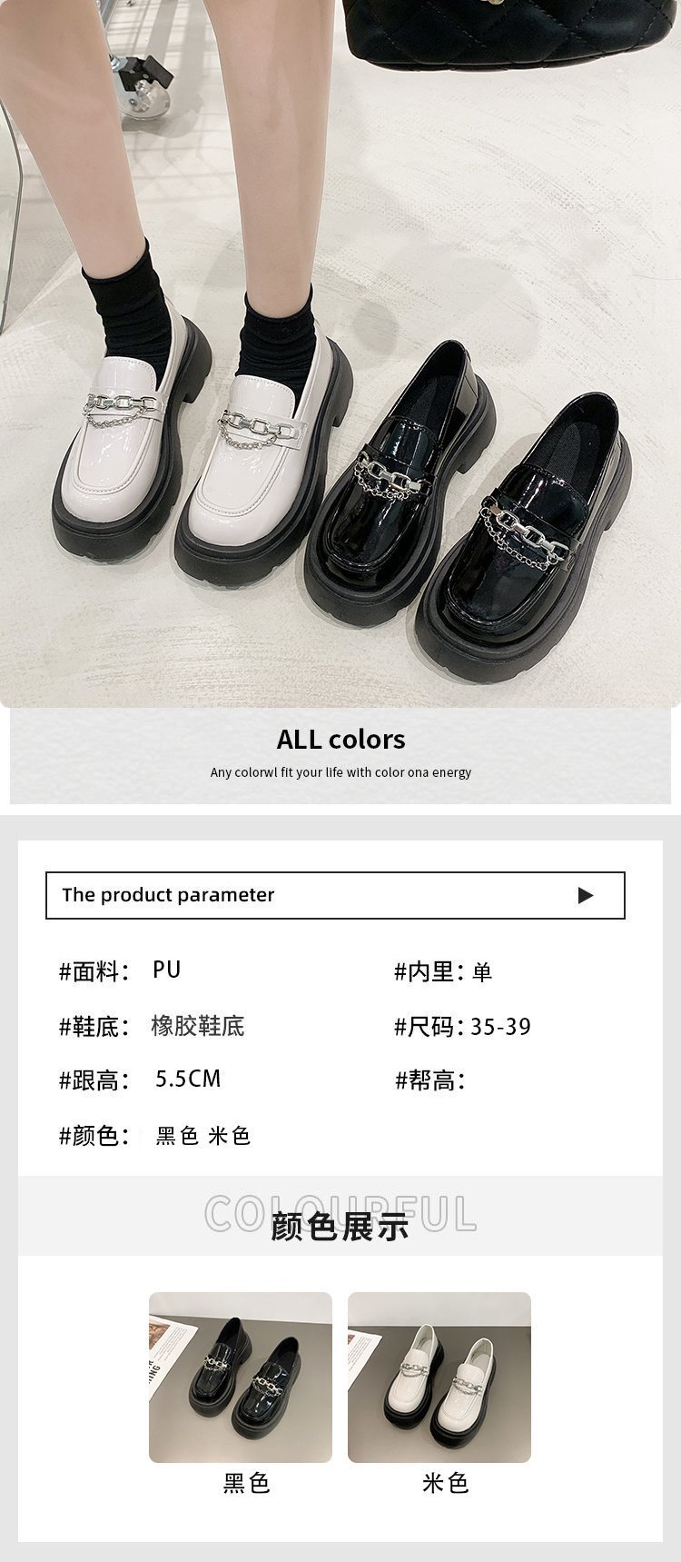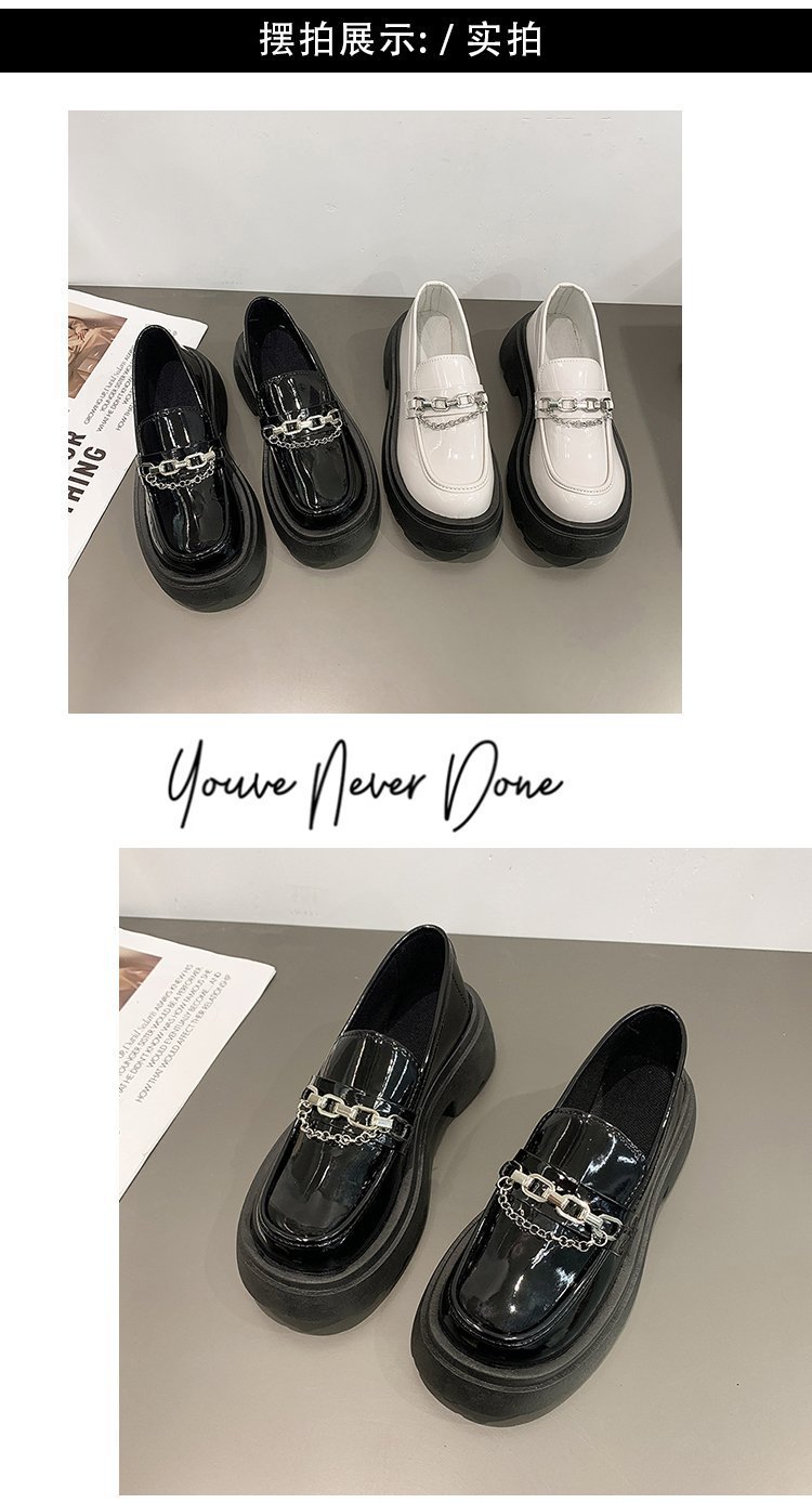두꺼운 바닥 로퍼 여성의 2024 새로운 라운드 헤드 페달 복고풍 작은 가죽 신발 영국 바람 두꺼운 뒤꿈치 신발 도매
