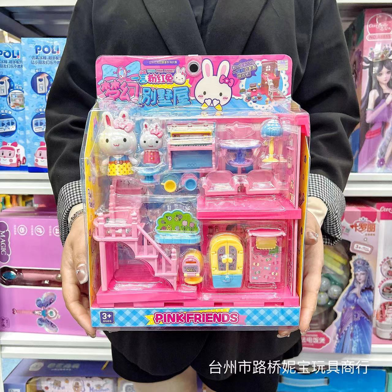 새로운 한 단어 핑크 토끼 해피 피크닉 자동차 세탁기 메모장 빌라 시뮬레이션 소녀 놀이 집 장난감