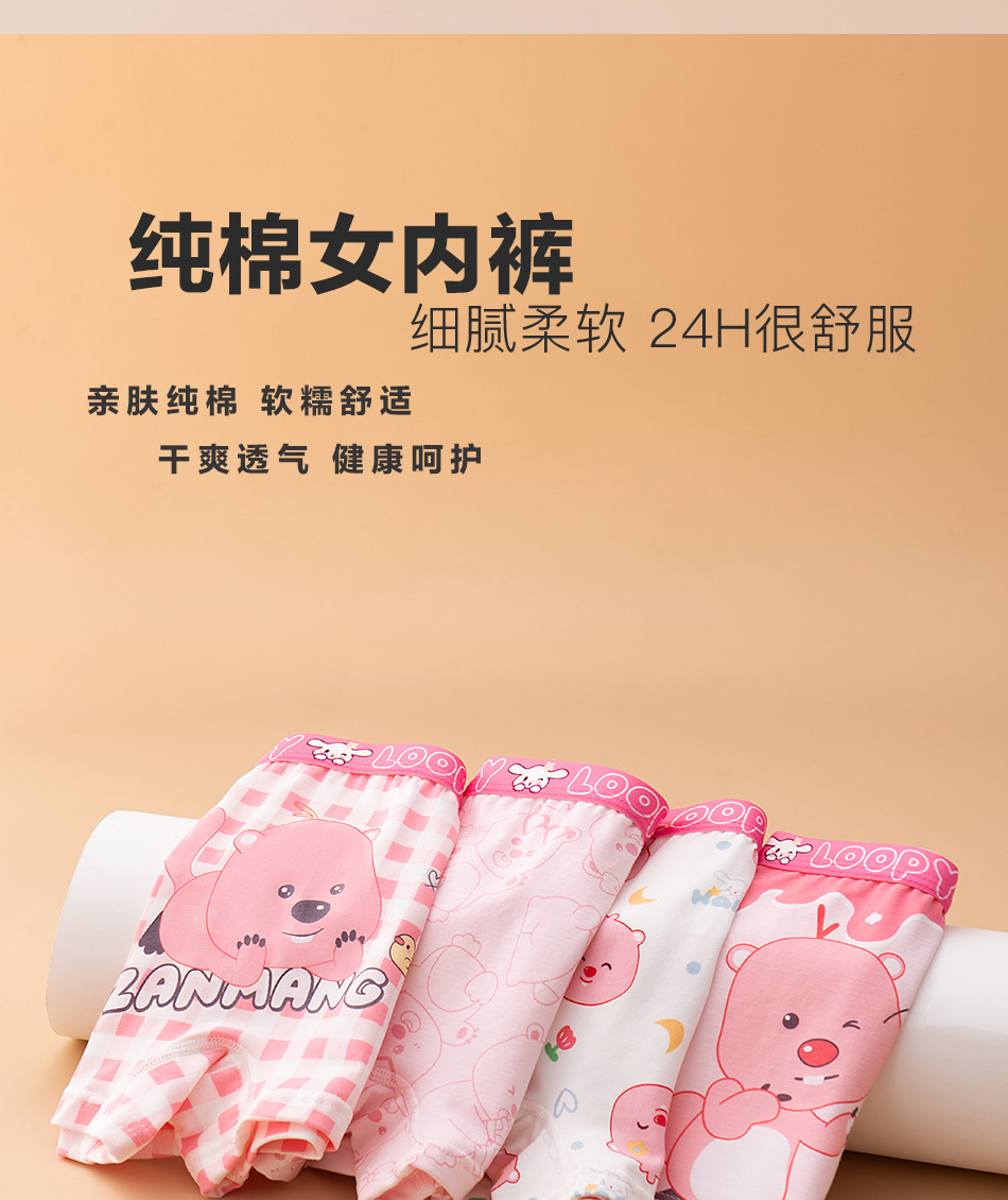 어린이용 여성용 속옷, 순면 사각팬티, 여아, 유아, 큰 아이, 어린이, 여자아이, 만화 캐릭터, 순면 가랑이부분스토어 가기