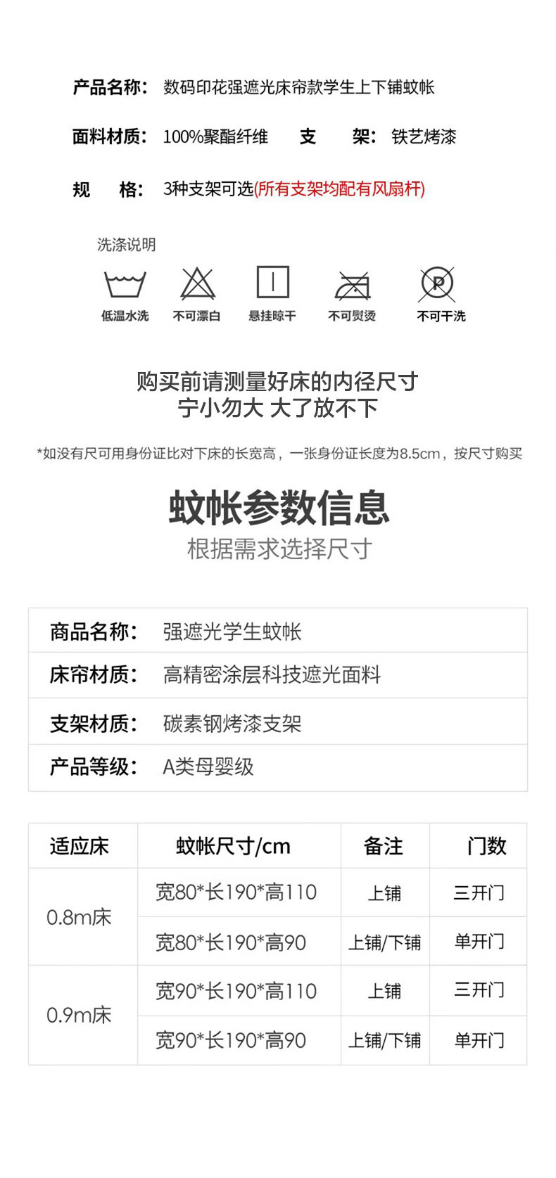 • 일체형 브래킷: 0.9m 침대 아래 단일 도어 높이 90cm