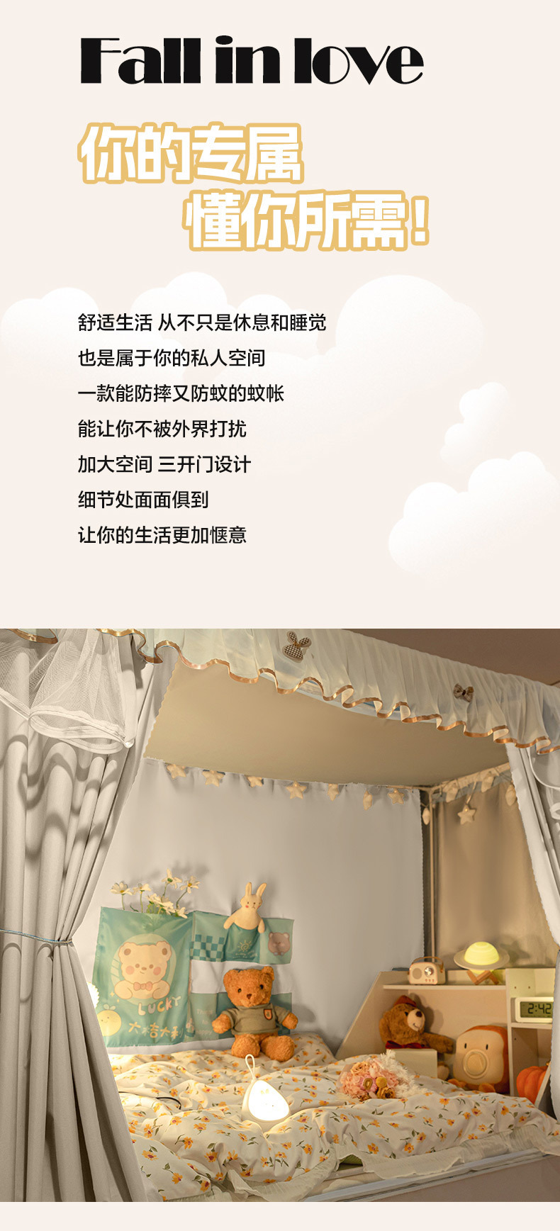 대학생 기숙사를위한 특수 모기장 그늘 통합 폐쇄 침대 커튼스토어 가기
