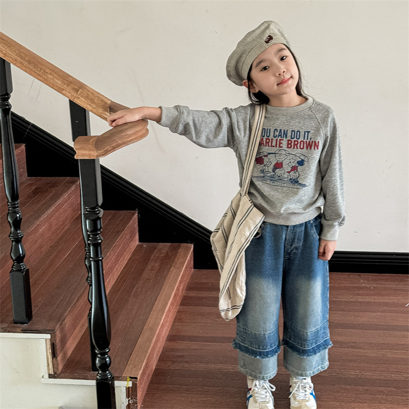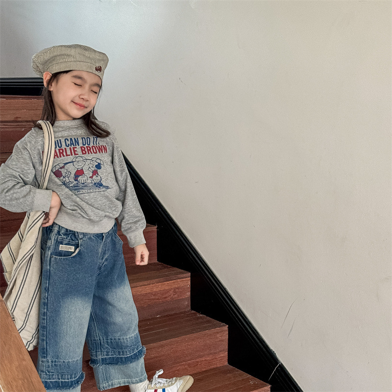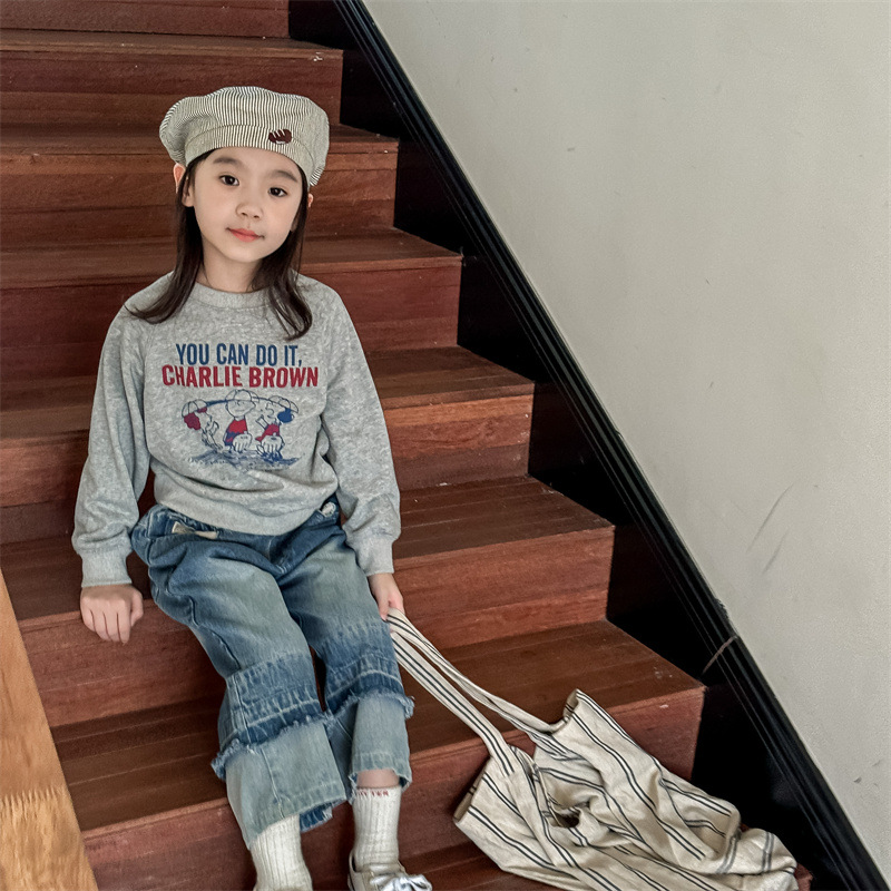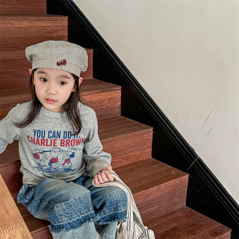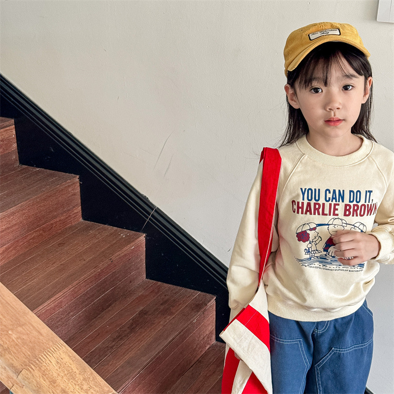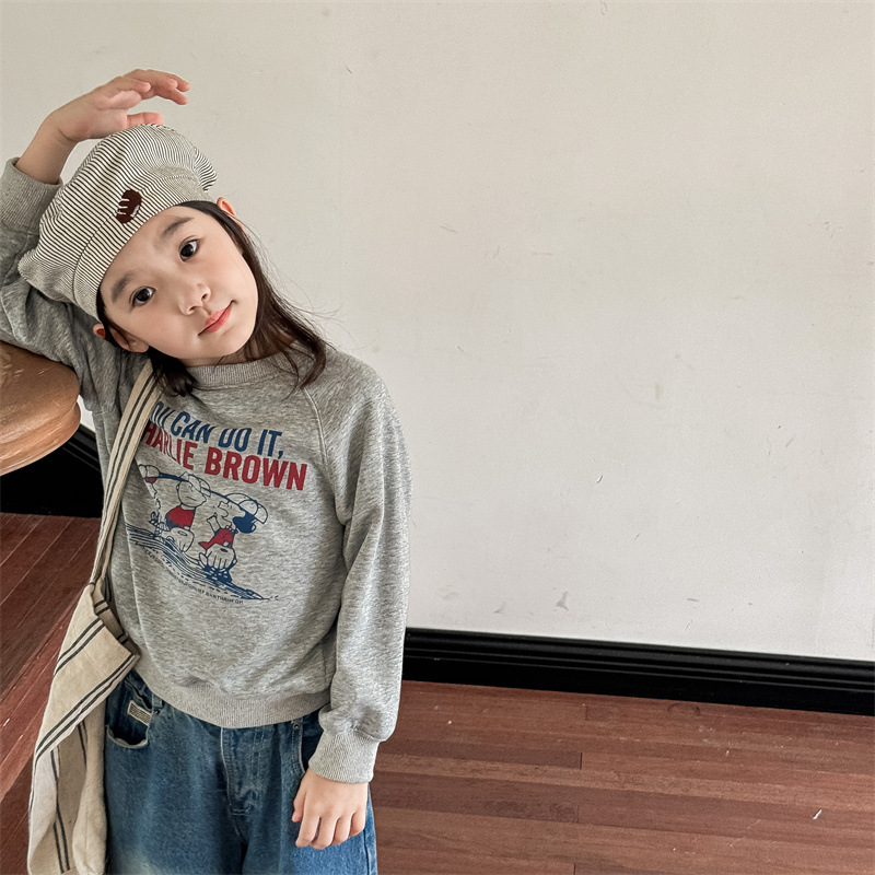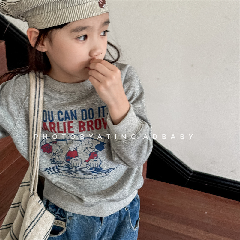 2026 아동복 봄 신상품 아동 봄 가을 한국 스타일 스웨트셔츠 남아 티셔츠 여아 이너웨어 5523