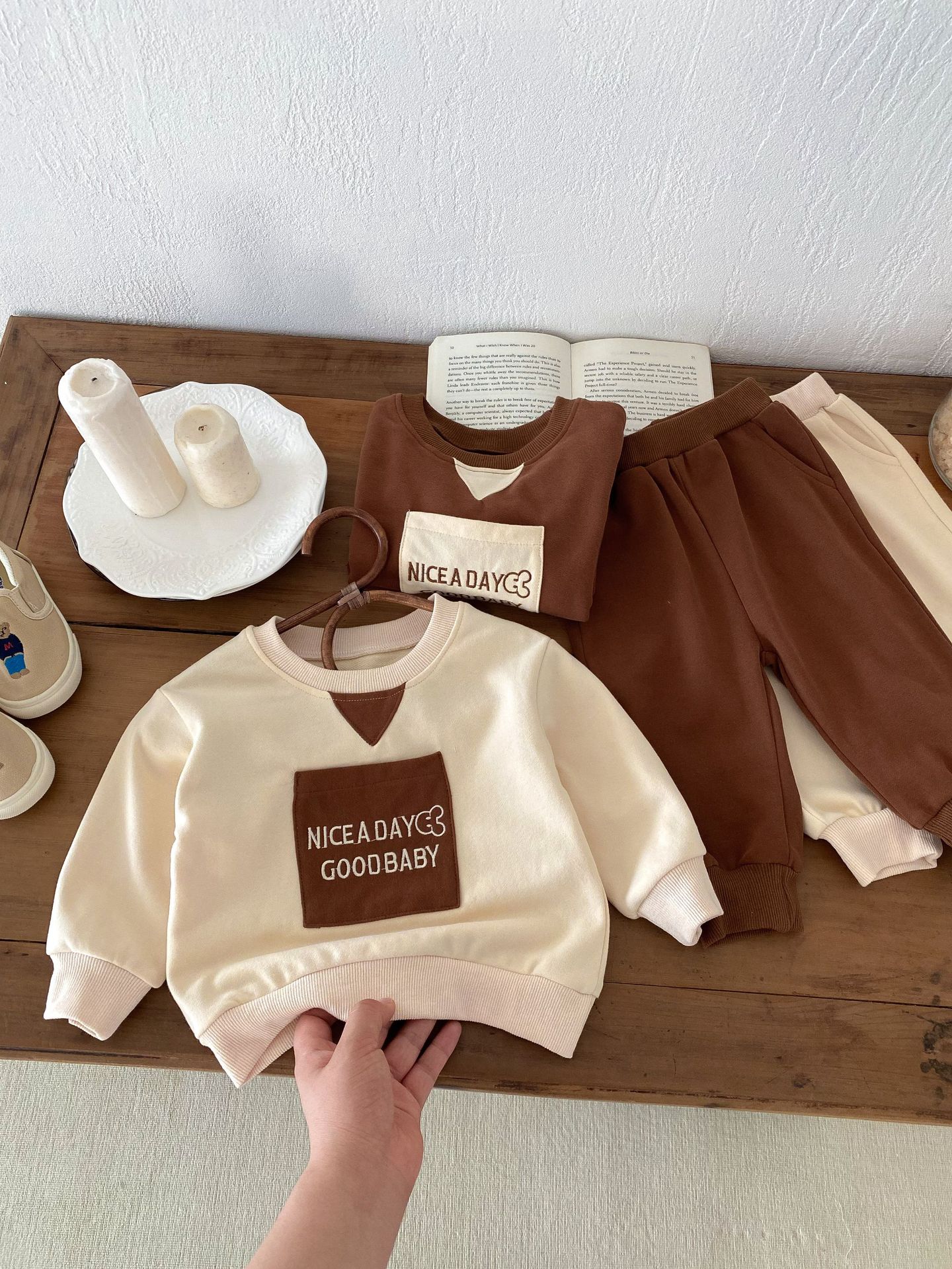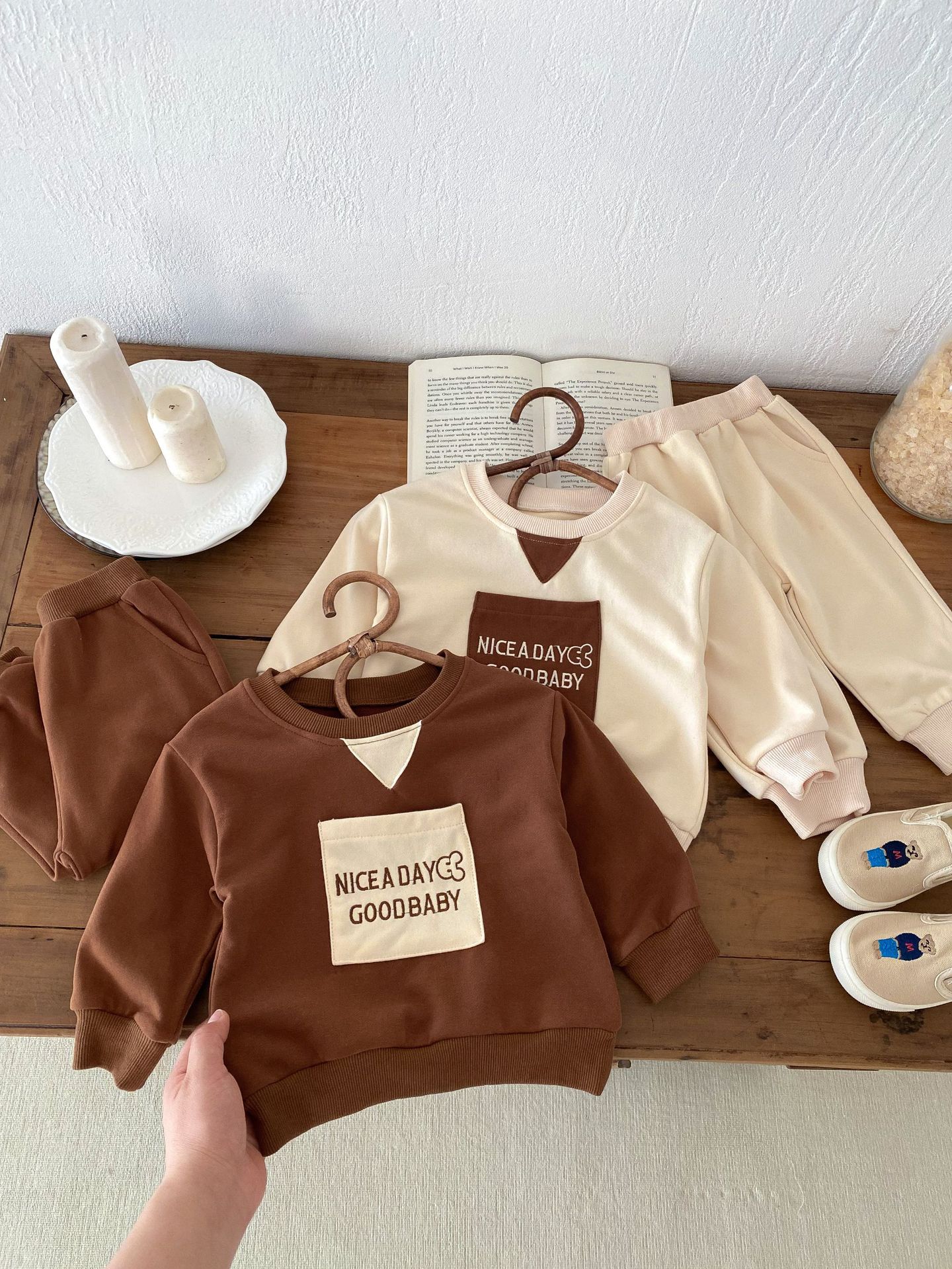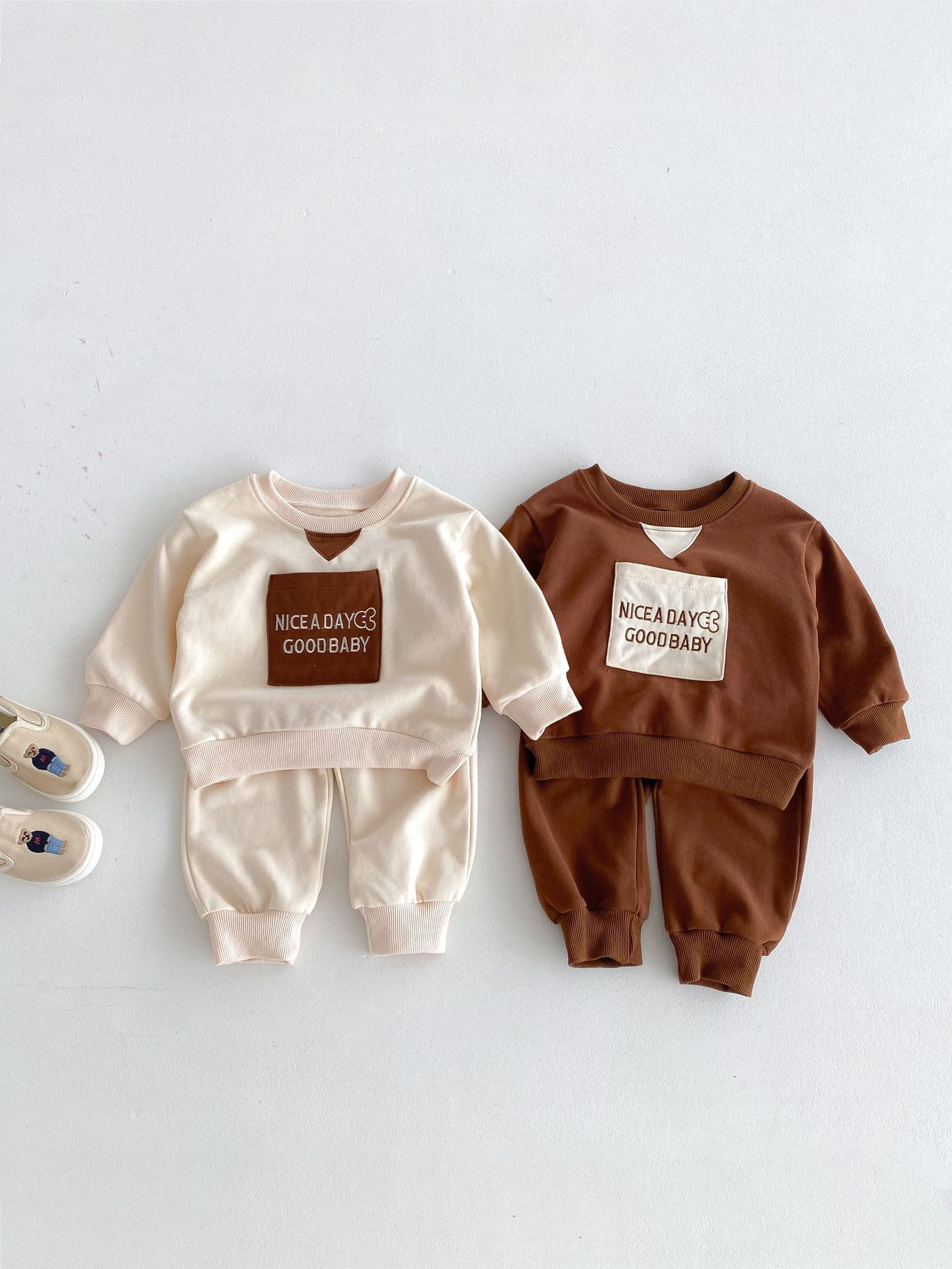 아기 2024 가을 옷 세트 편지 캐주얼 스포츠 스웨터 바지 투피스 유아 아동복 가을 의류스토어 가기