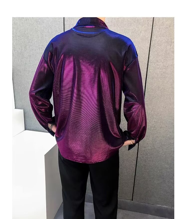 가을 빛 원래 패션 브랜드 개성 밝은 색상 시원한 러피 잘 생긴 노철 셔츠 남성 패션 스팽글 틈새 셔츠 패션