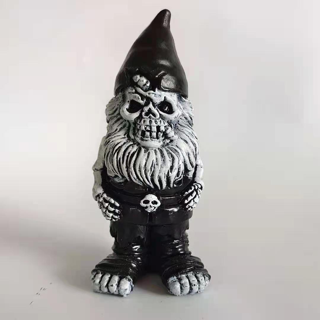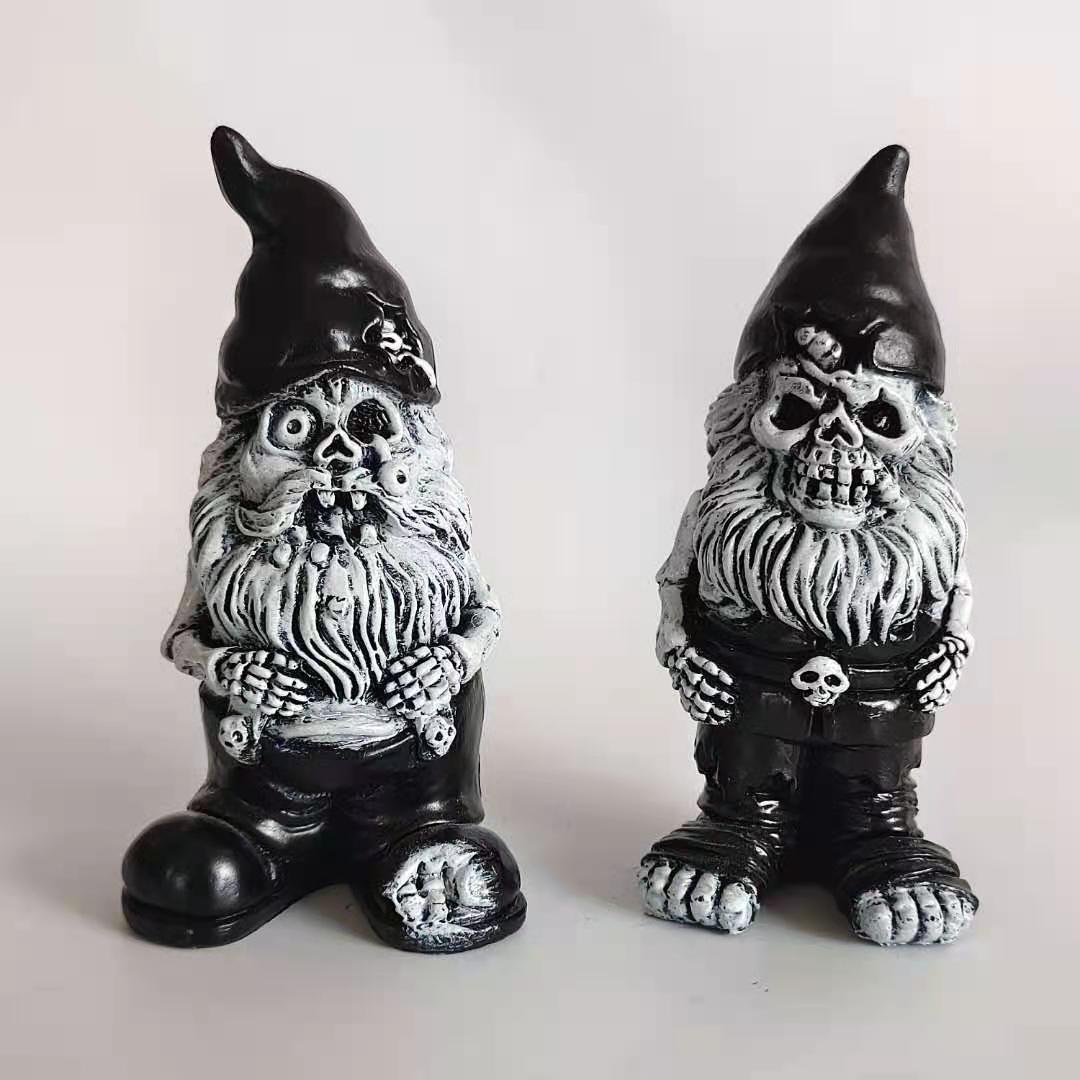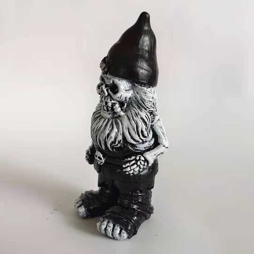 국경 새로운 검은 두개골 흰 수염 노인 조각 수지 공예 할로윈 장식 머리카락 세대스토어 가기