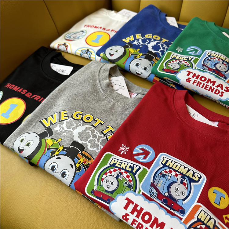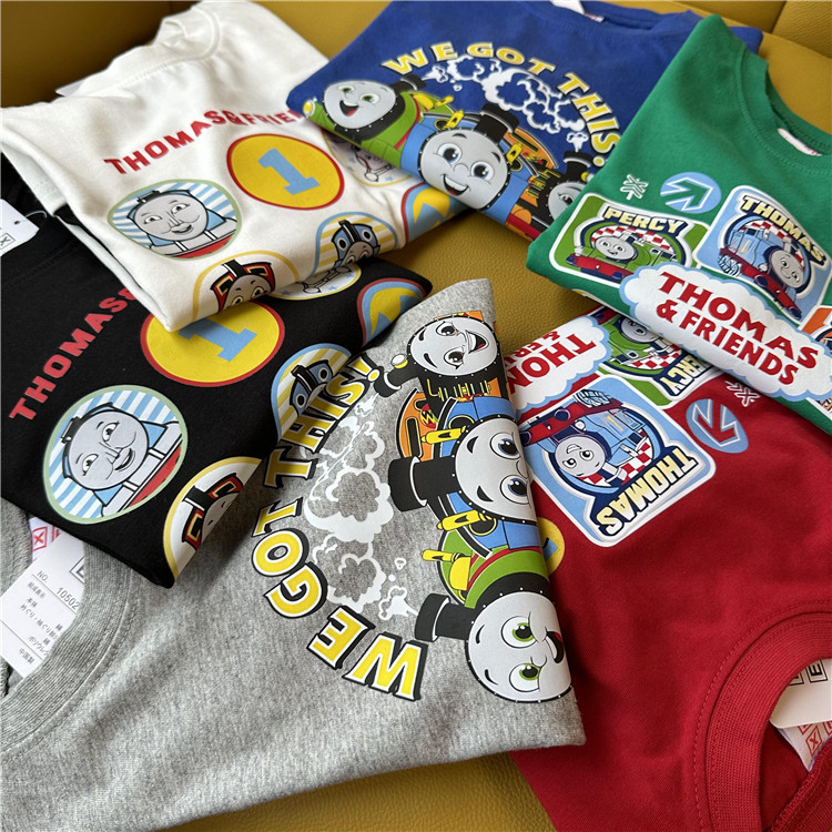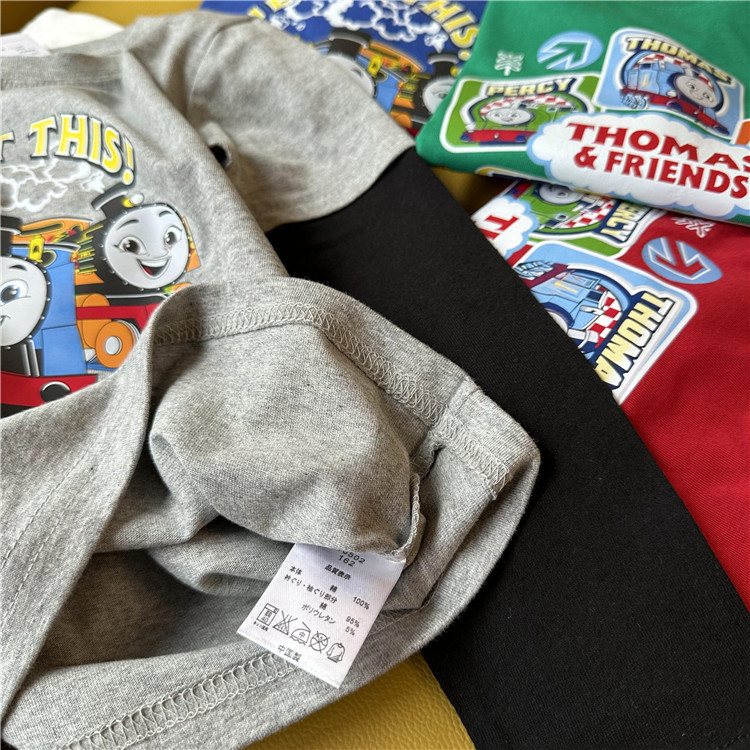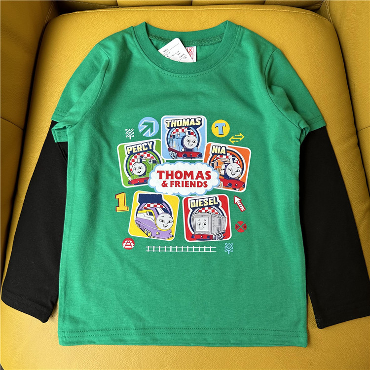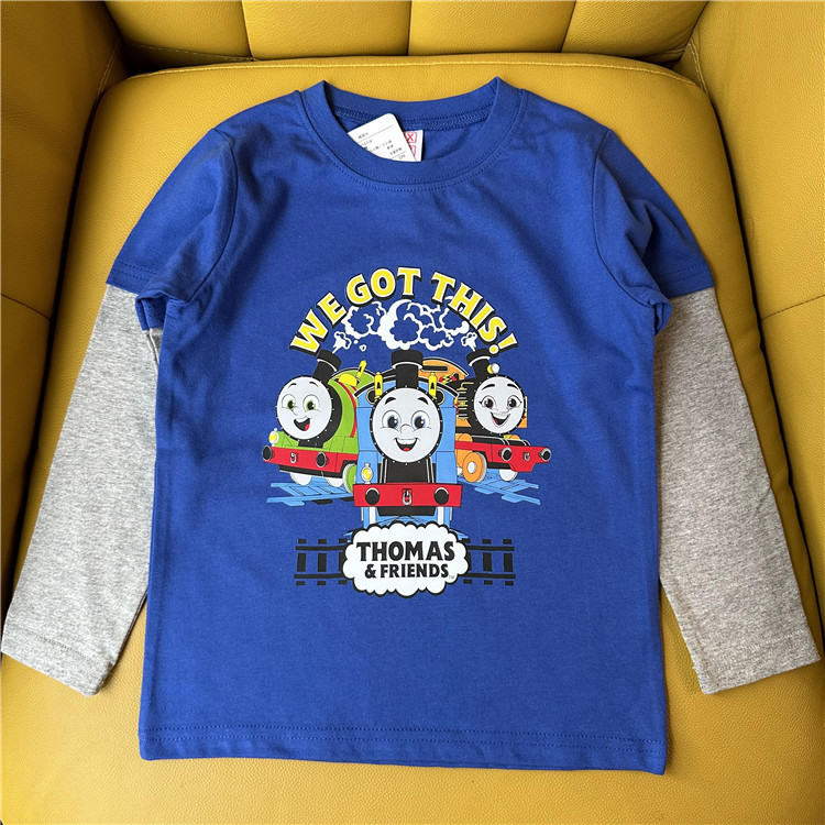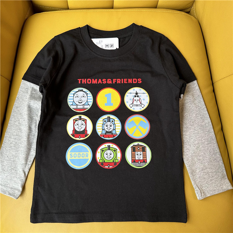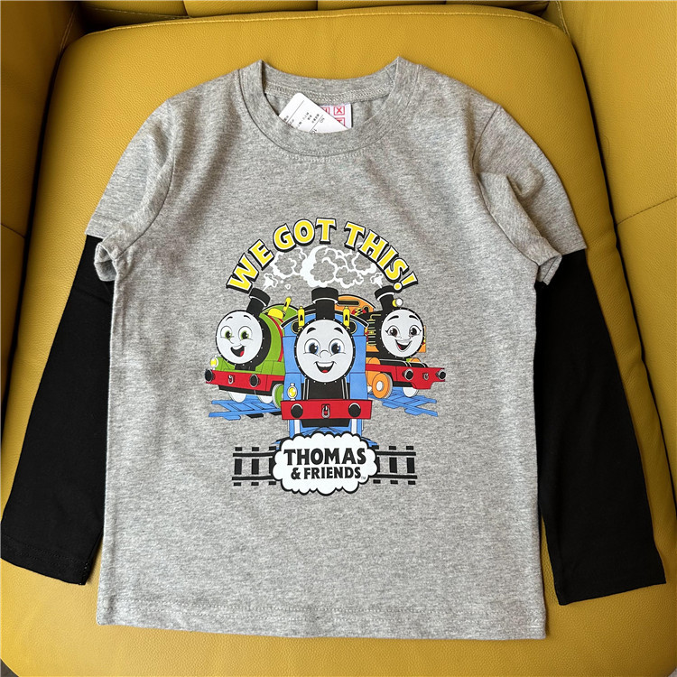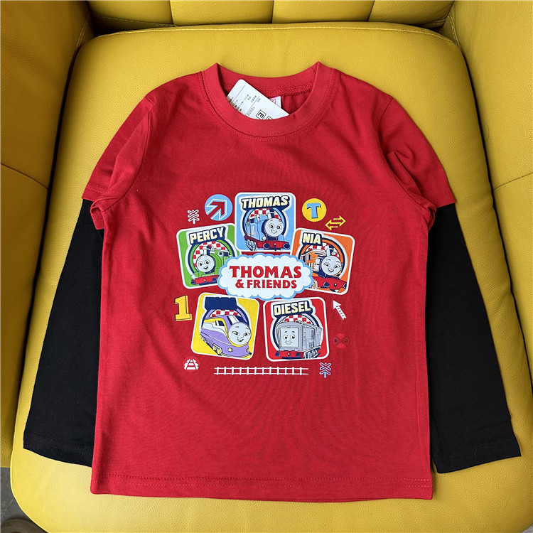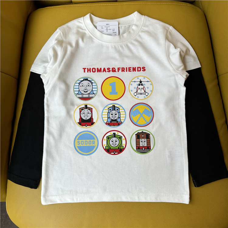 日单外贸卡通小火车系列童装长袖假两件休闲衫