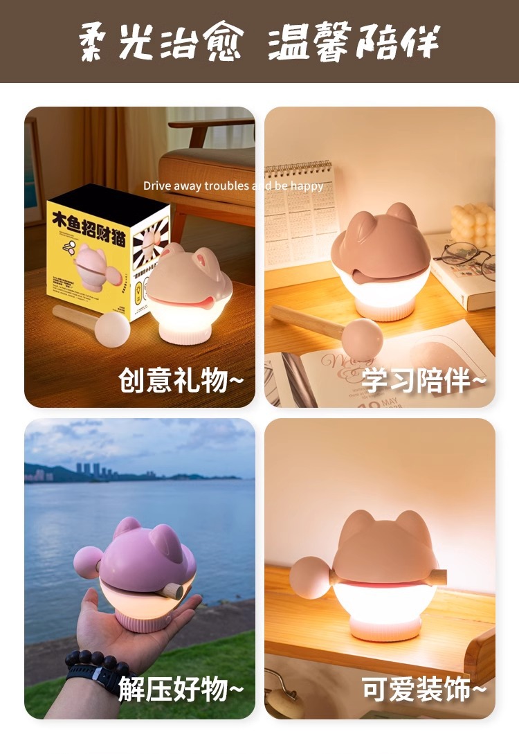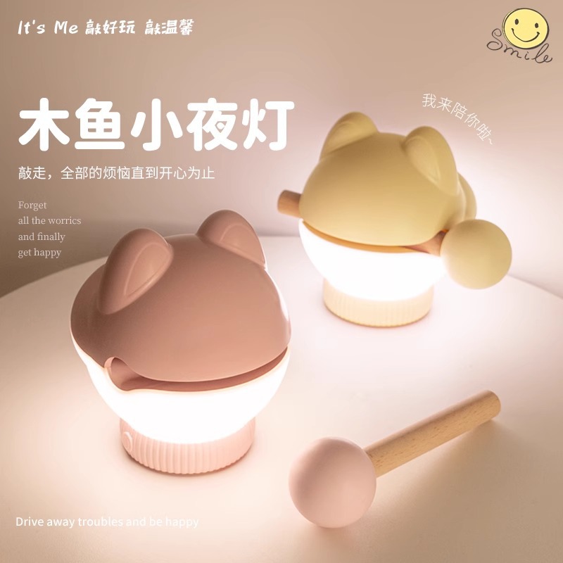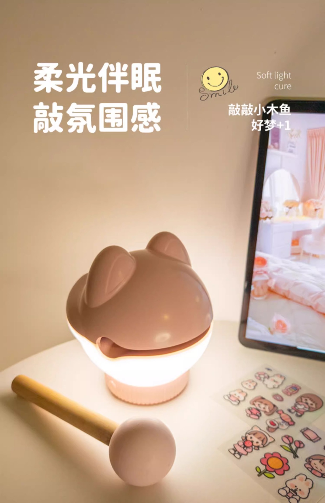 나무 물고기 감압 노킹 밤 빛 침실 수면 조명 충전 소녀를위한 창조적 인 생일 선물 분위기 책상 램프