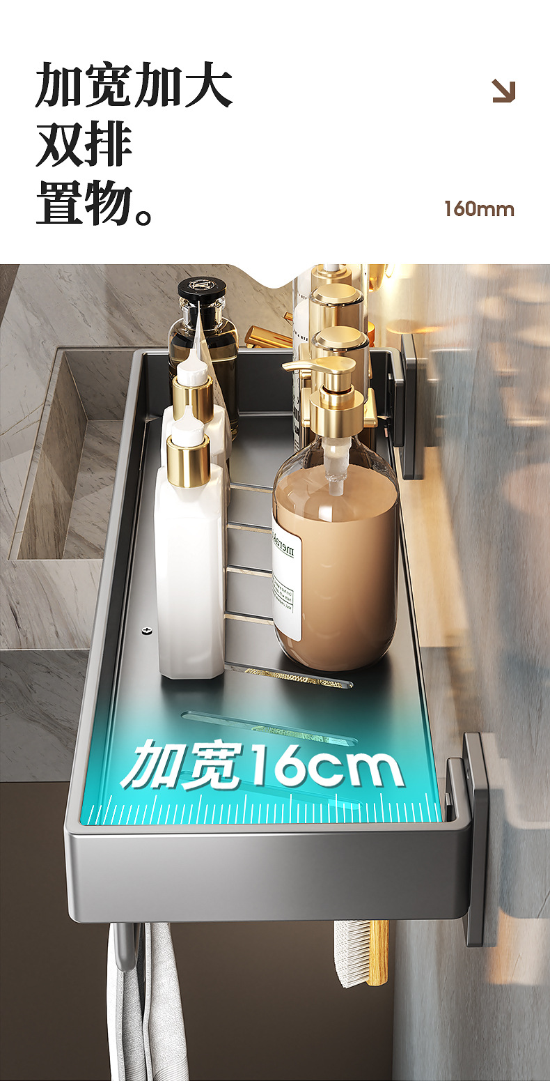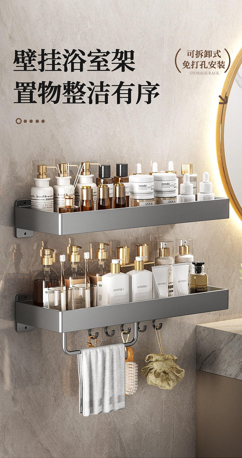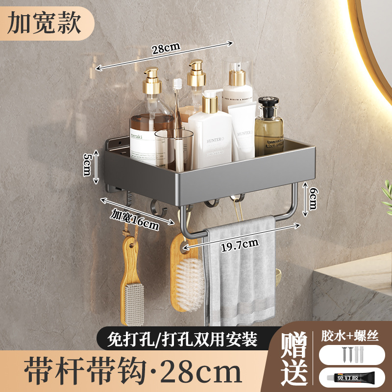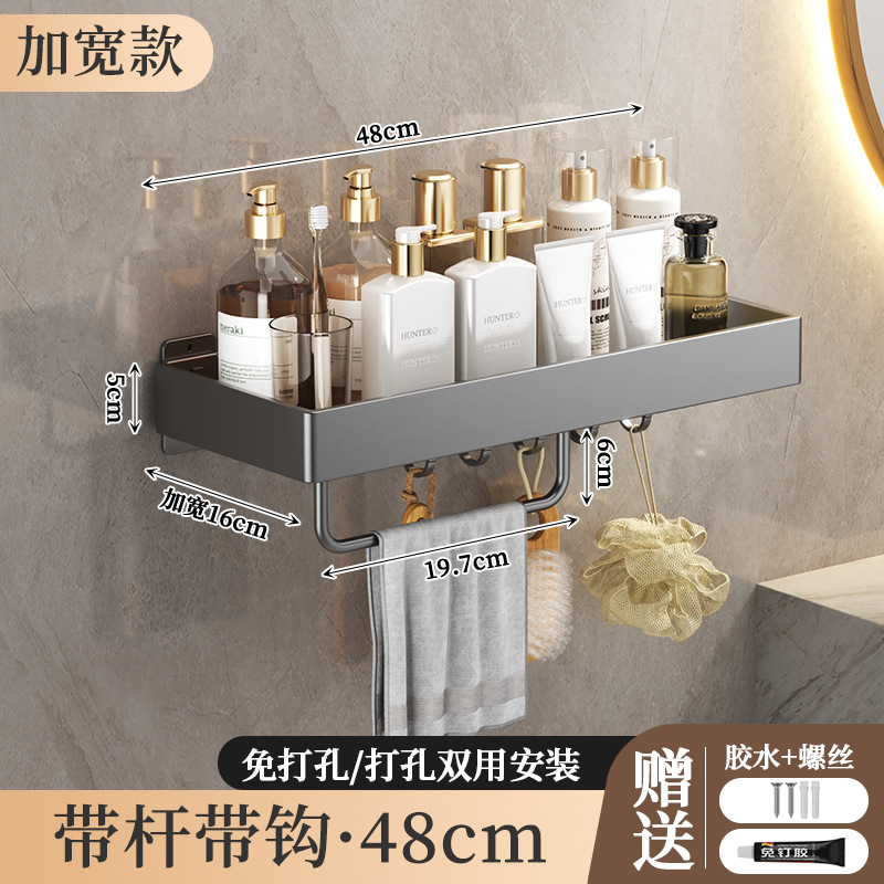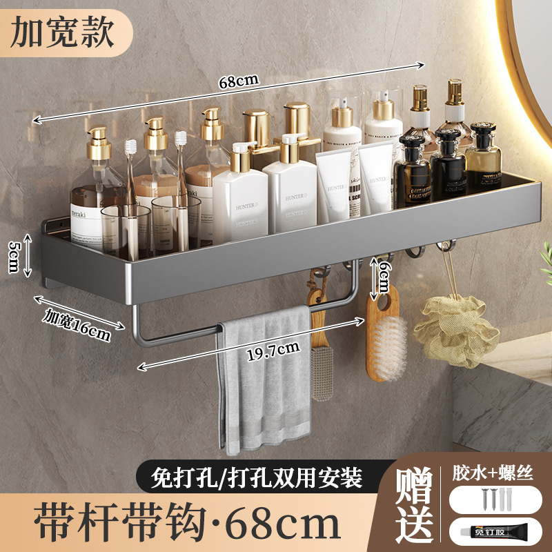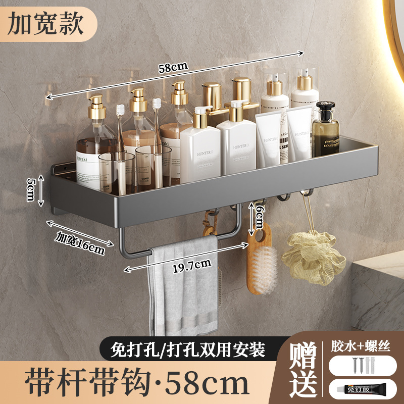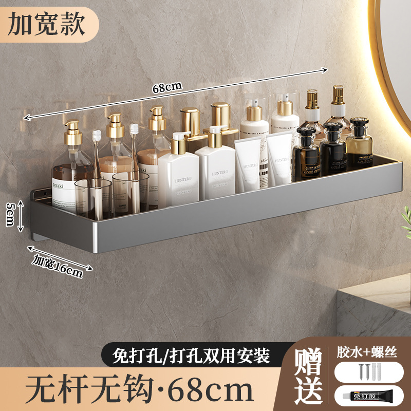 넓고 두꺼운 욕실 보관 랙 샤워 이슬 랙 욕실 가정용 구멍이없는 직사각형 랙 벽걸이 보관