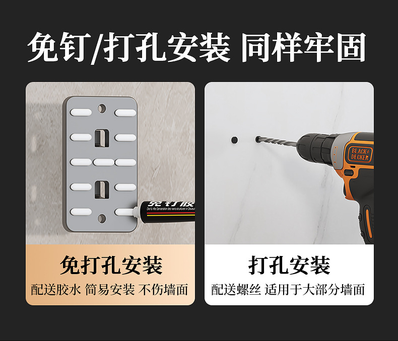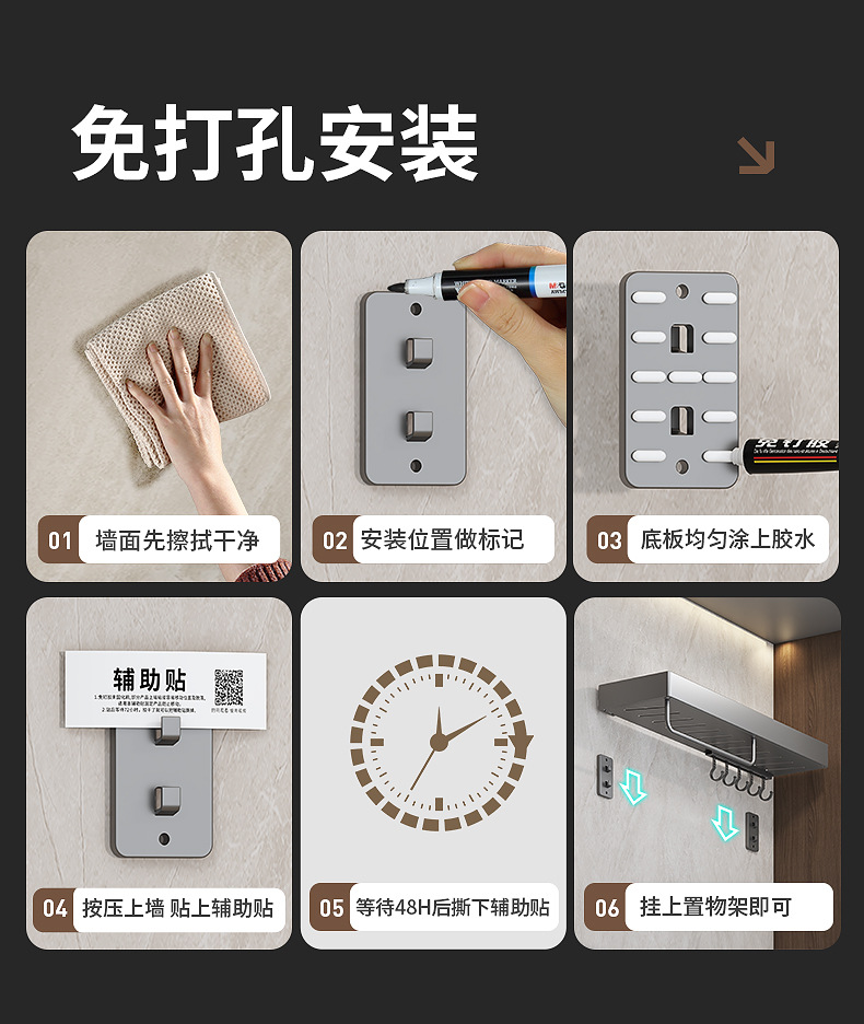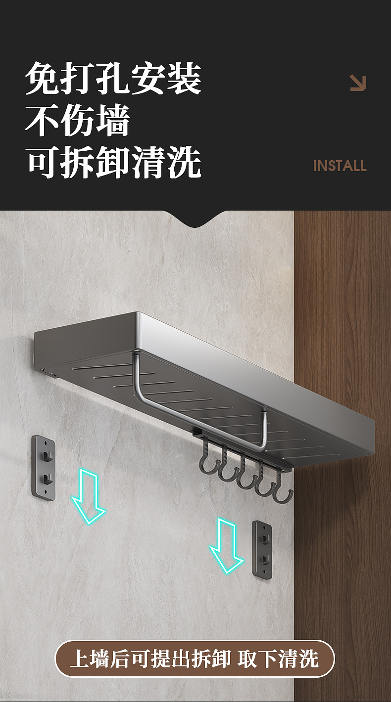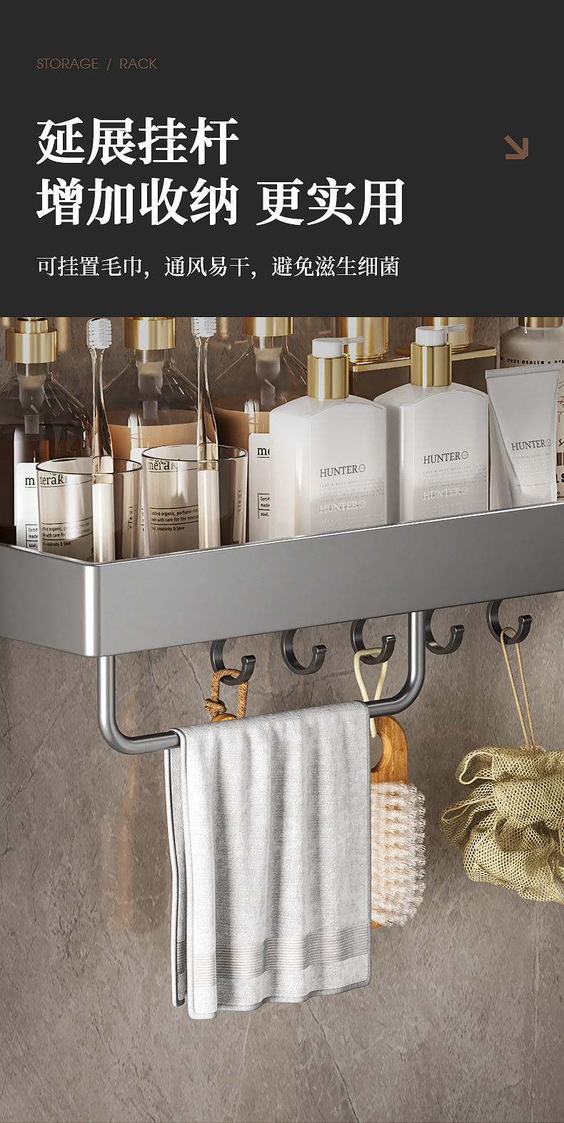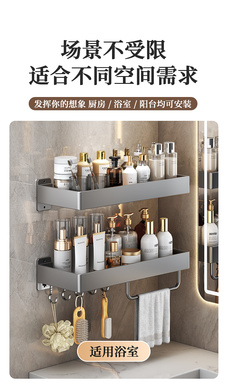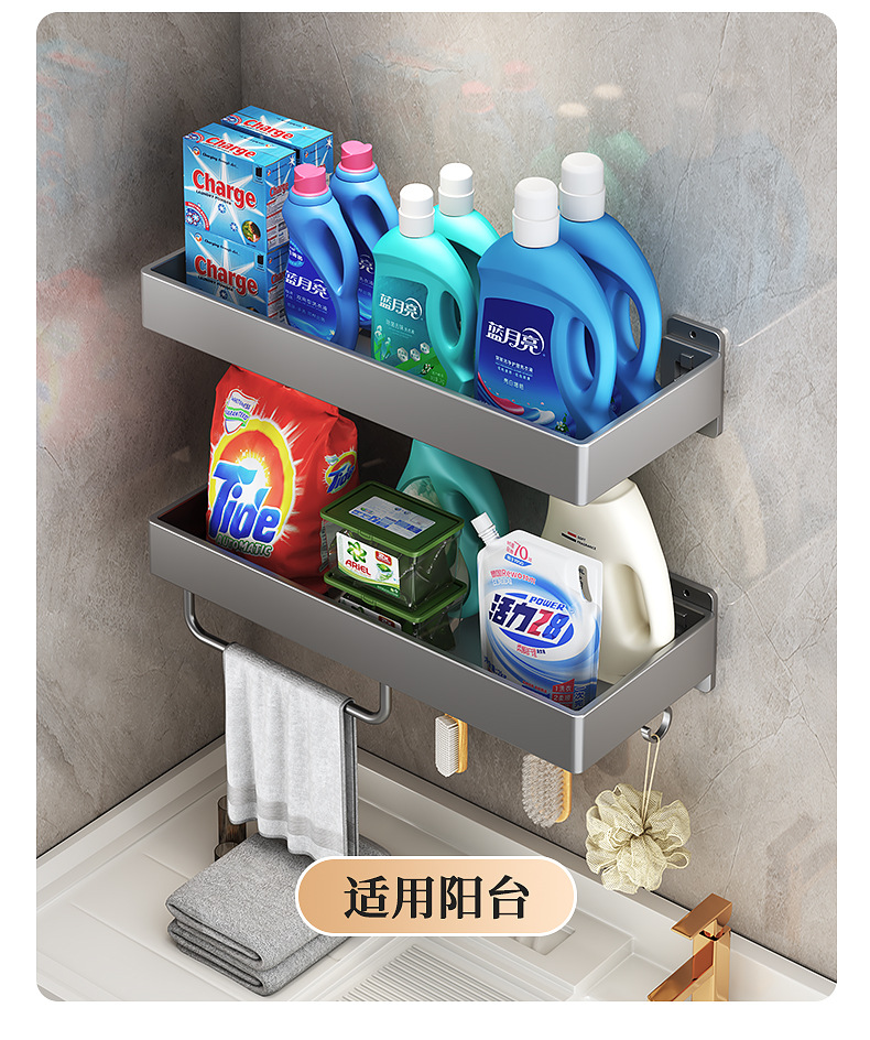 넓고 두꺼운 욕실 보관 랙 샤워 이슬 랙 욕실 가정용 구멍이없는 직사각형 랙 벽걸이 보관