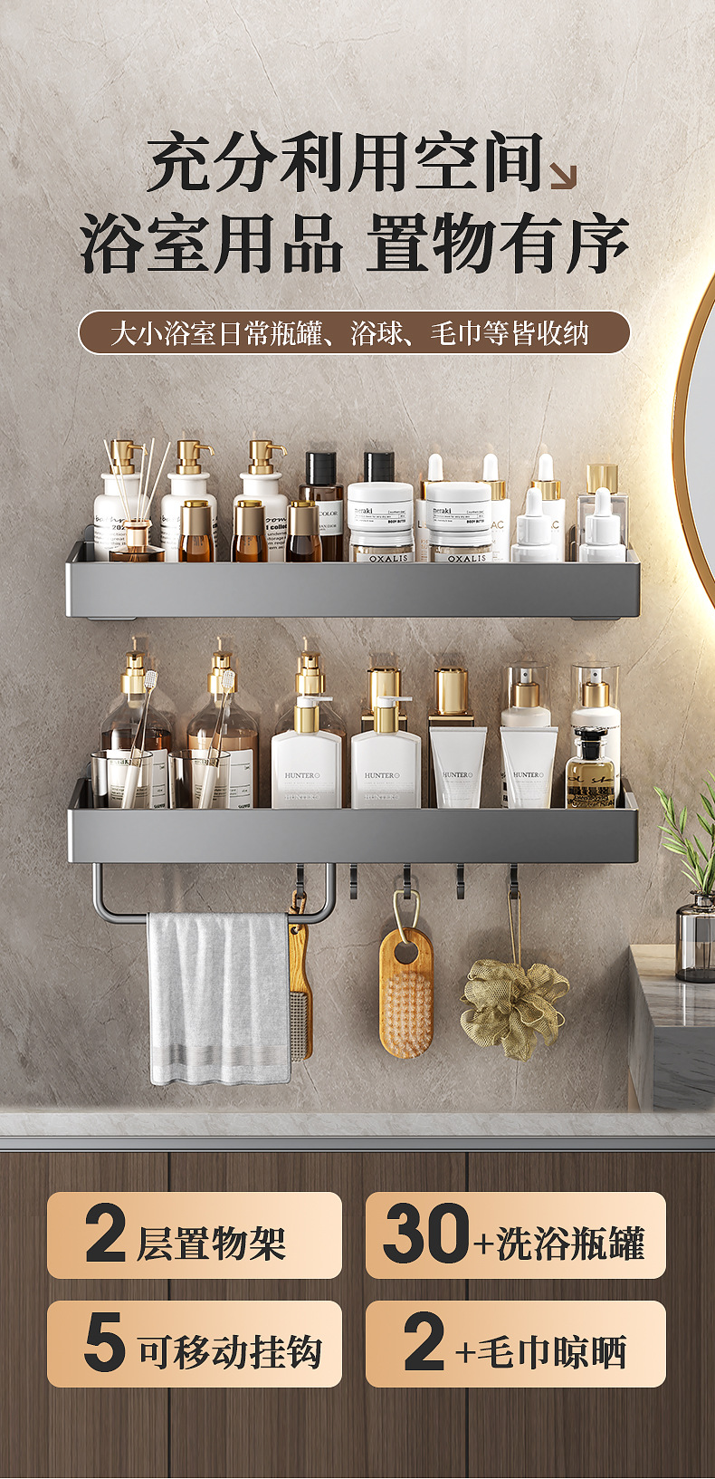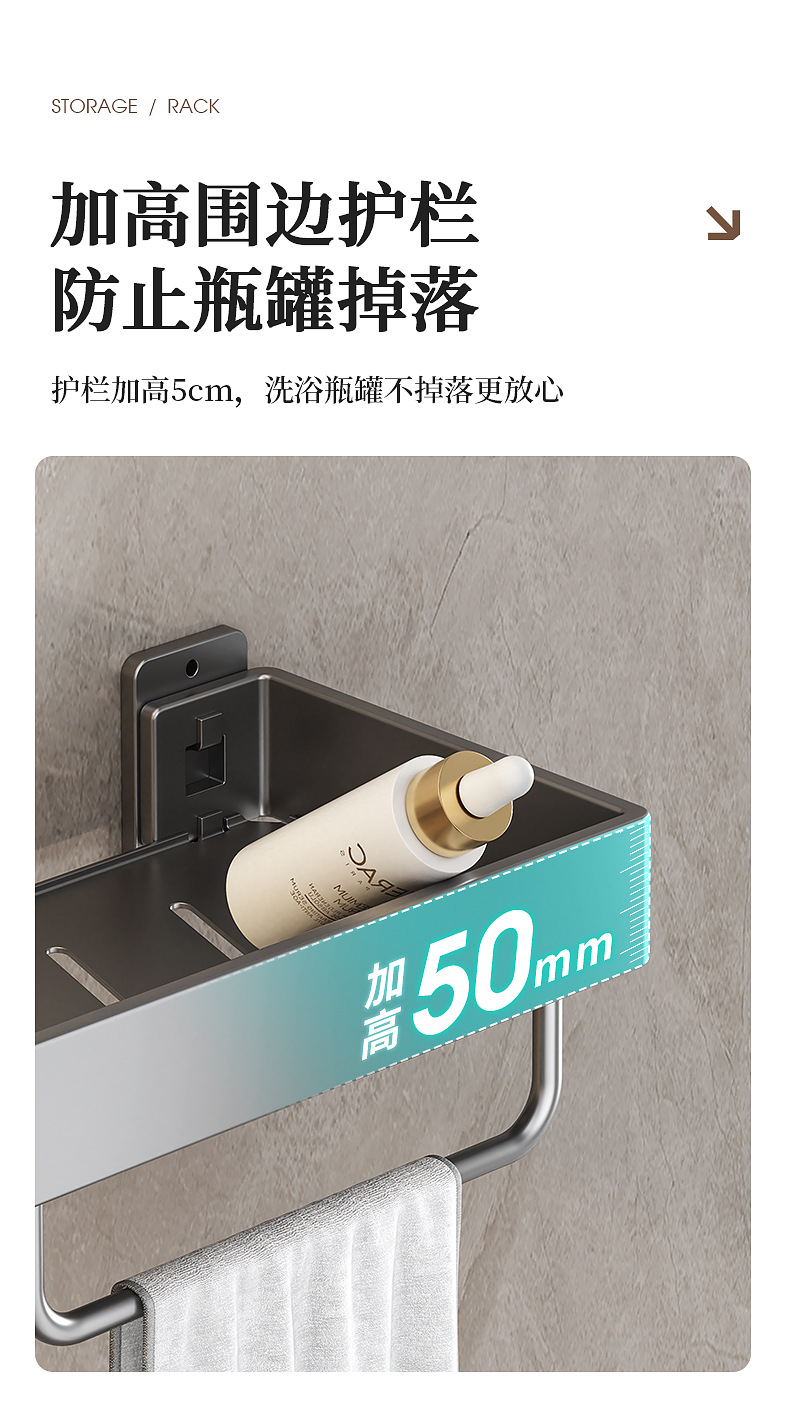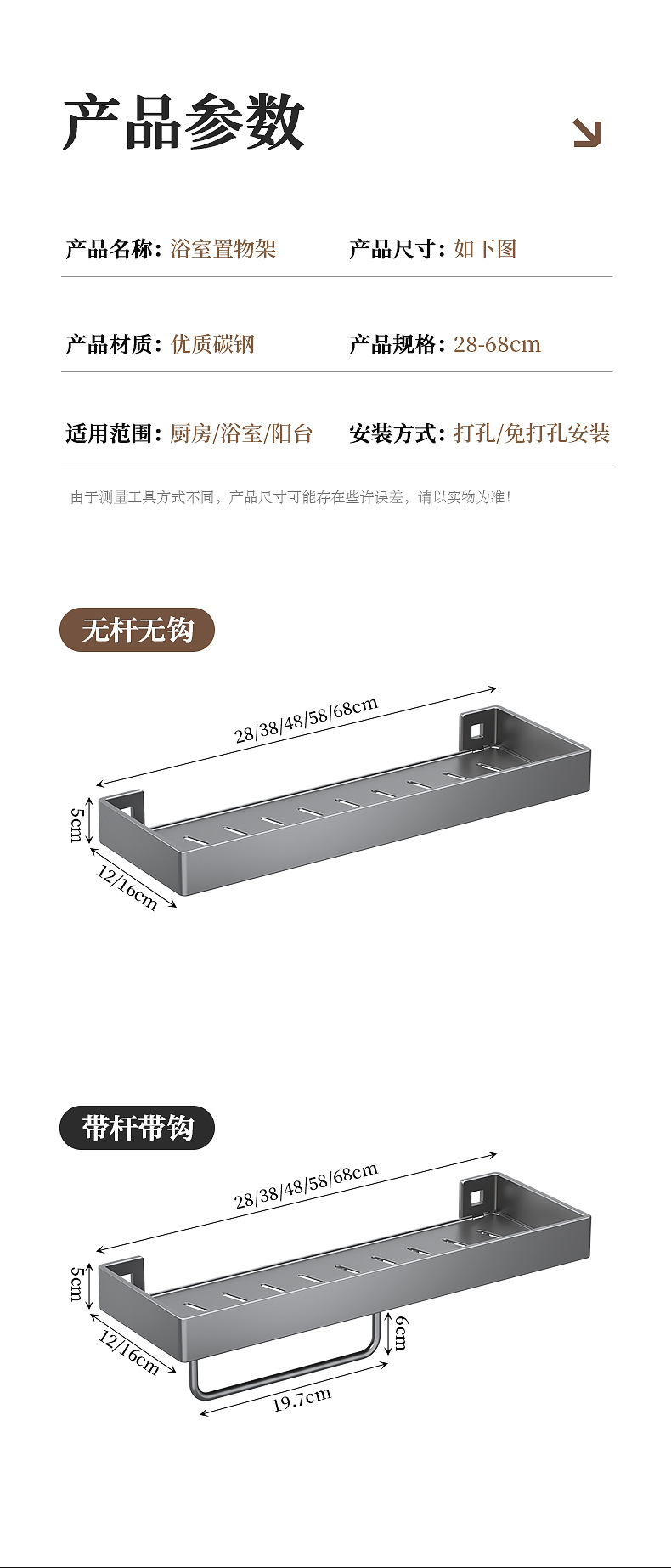 넓고 두꺼운 욕실 보관 랙 샤워 이슬 랙 욕실 가정용 구멍이없는 직사각형 랙 벽걸이 보관스토어 가기