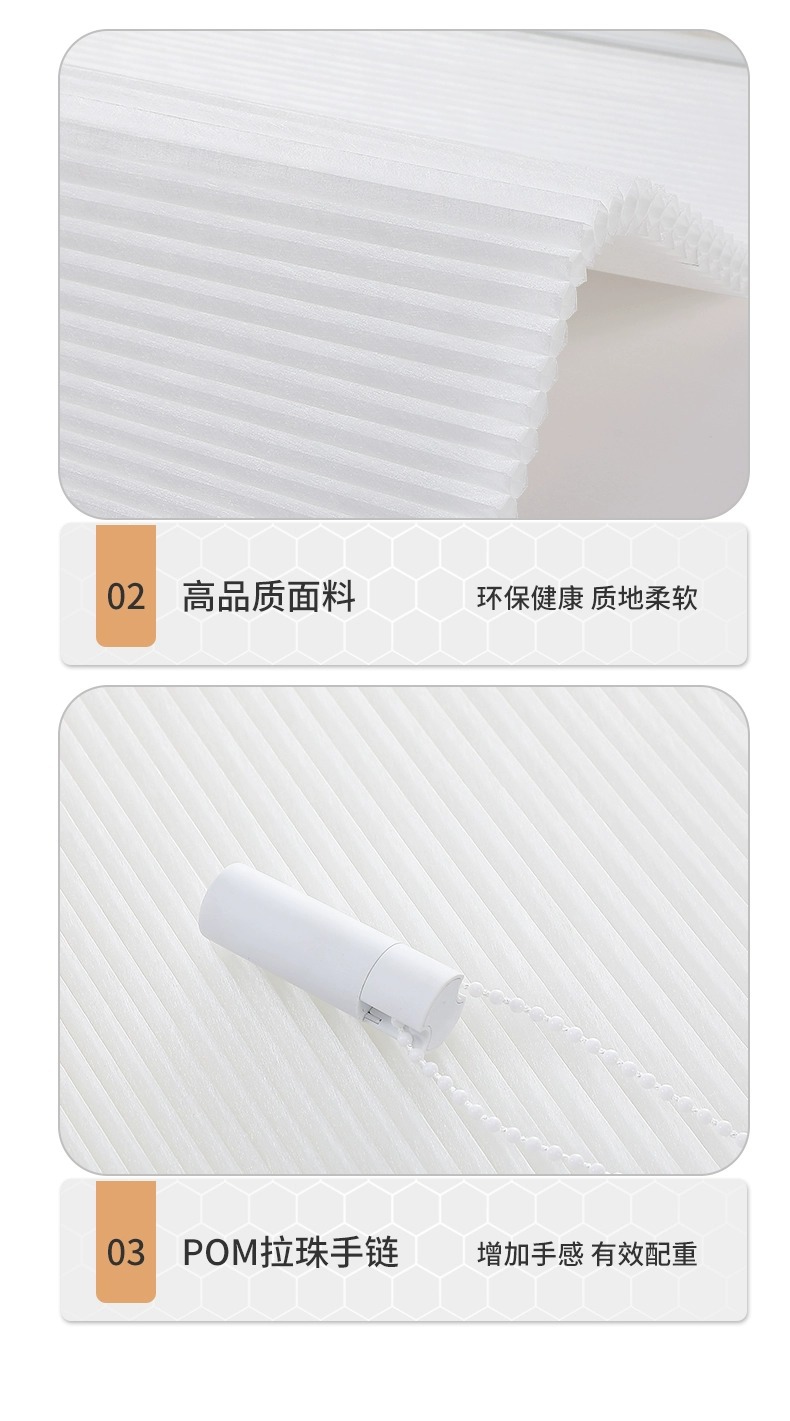 • 3.8CM 구멍 중간 구멍 벌집 커튼 흰색 반 음영