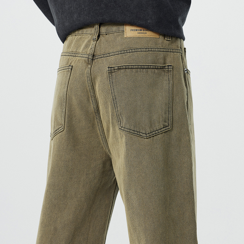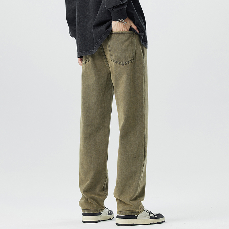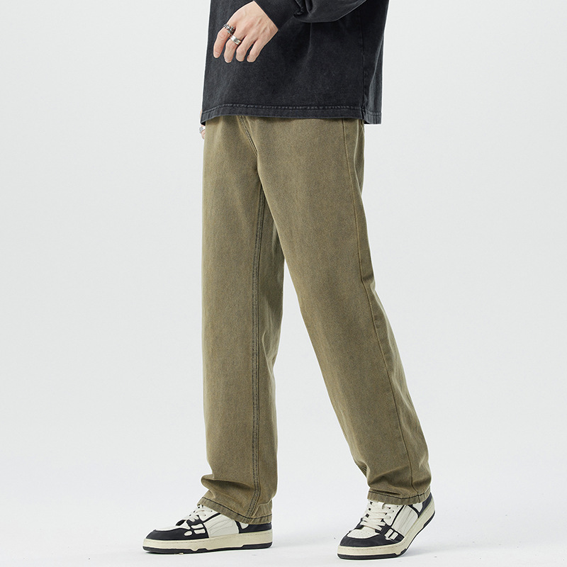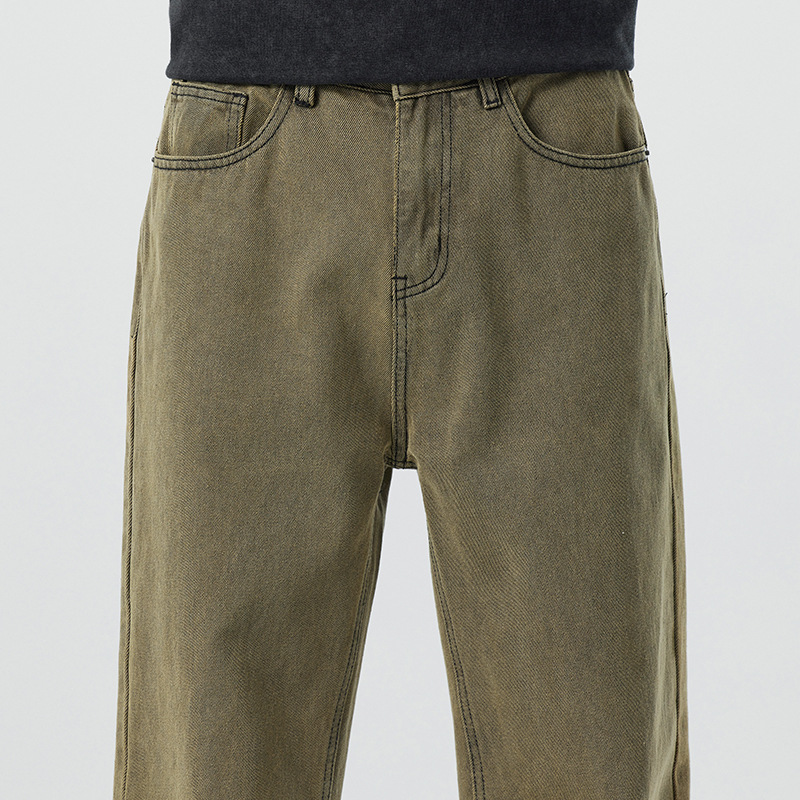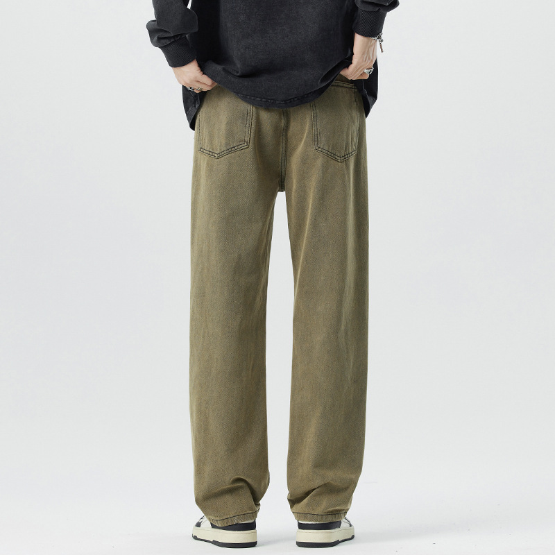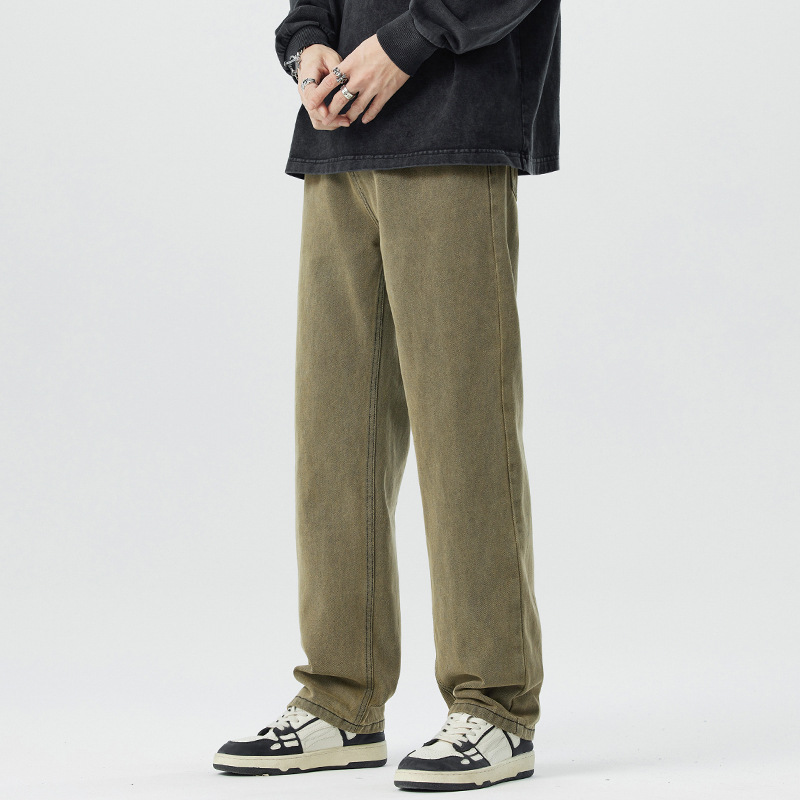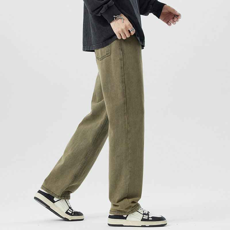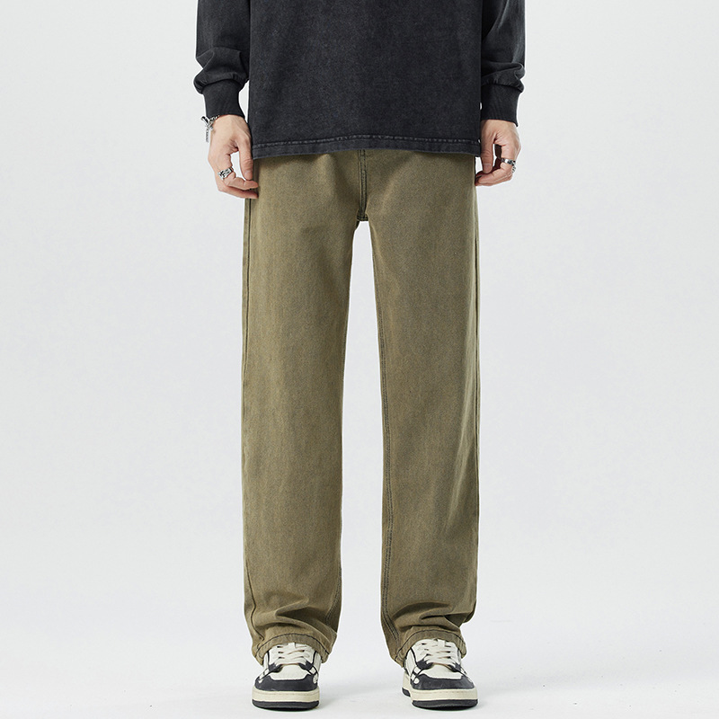 미국 무거운 씻은 노란 진흙 염색 넓은 다리 청바지 남성 여름 느슨한 직선 캐주얼 긴 바지 봄과 가을스토어 가기