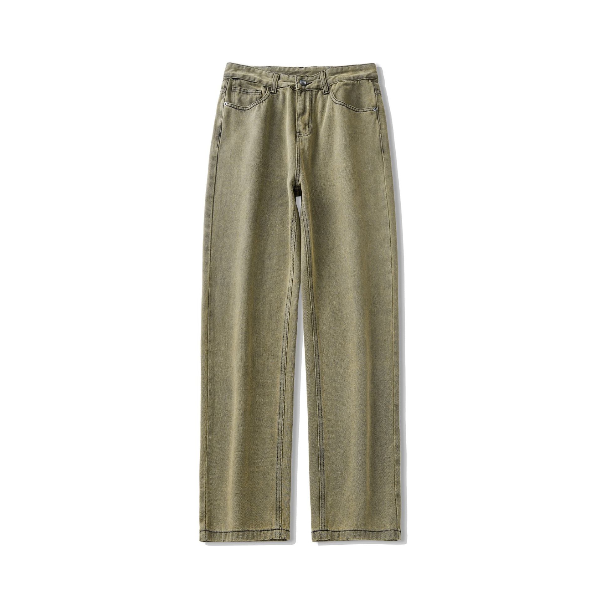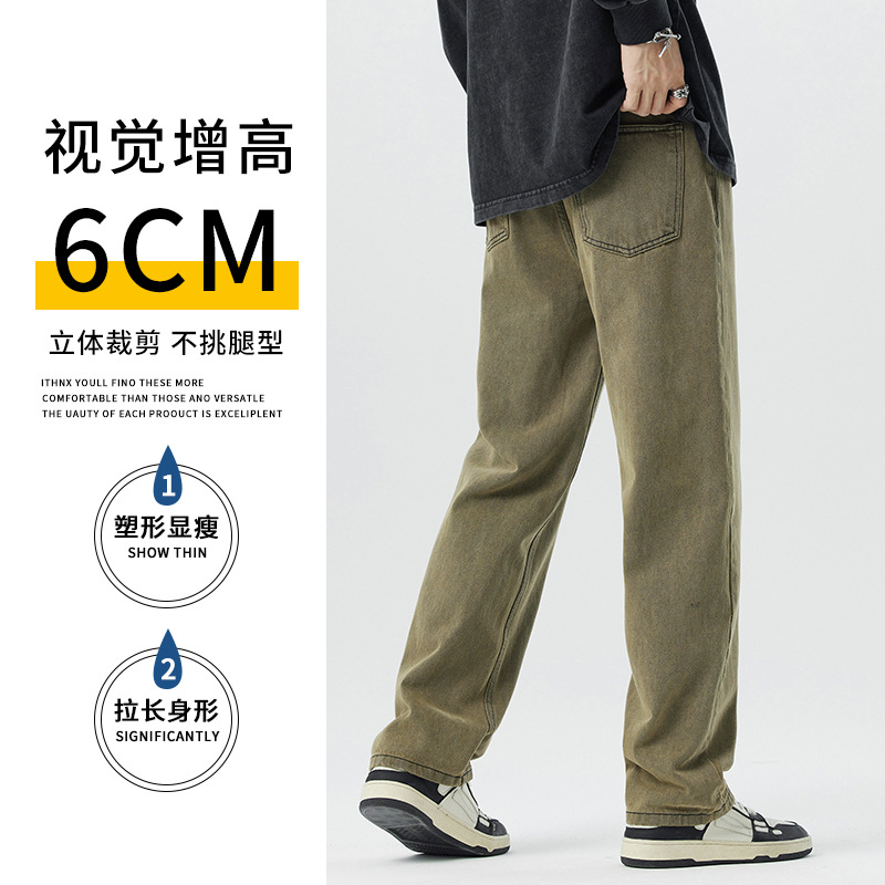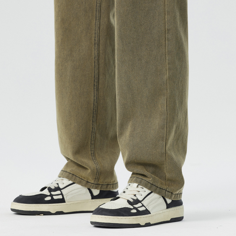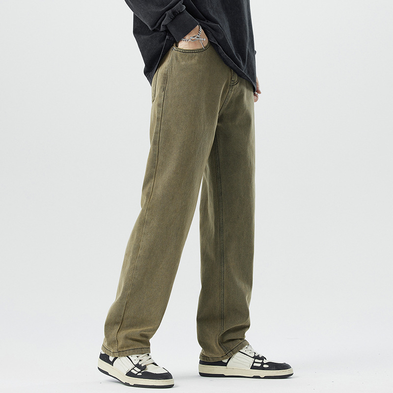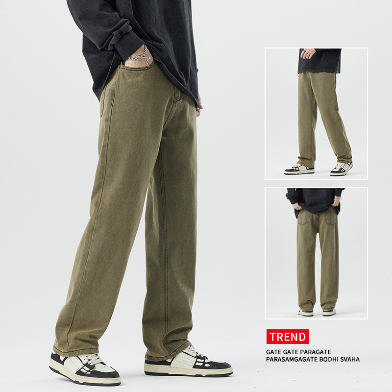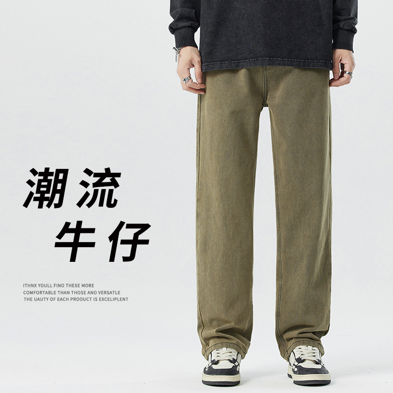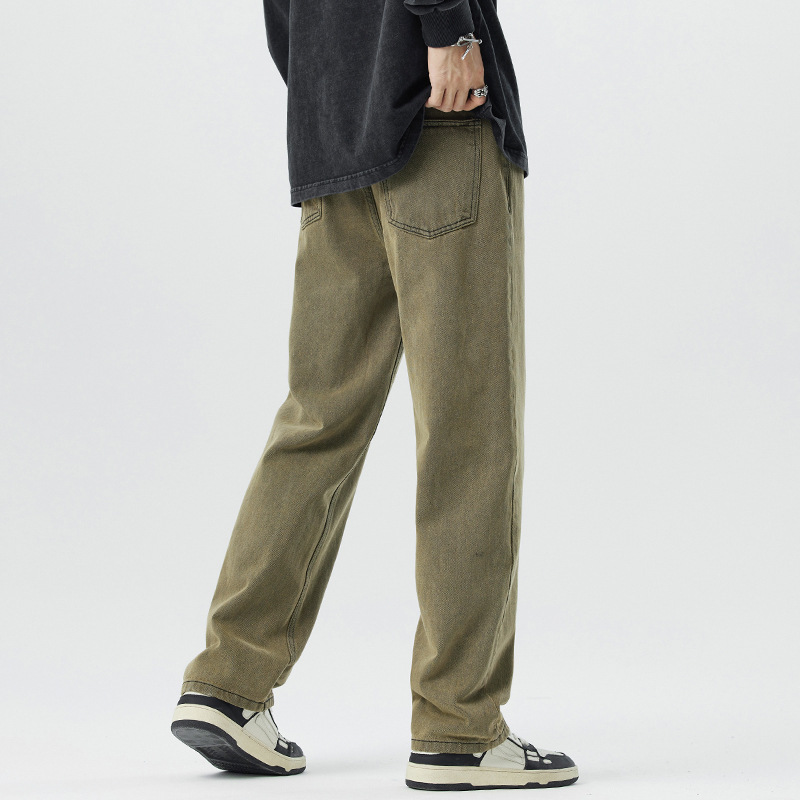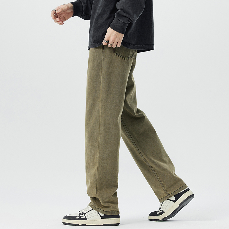 미국 무거운 씻은 노란 진흙 염색 넓은 다리 청바지 남성 여름 느슨한 직선 캐주얼 긴 바지 봄과 가을스토어 가기