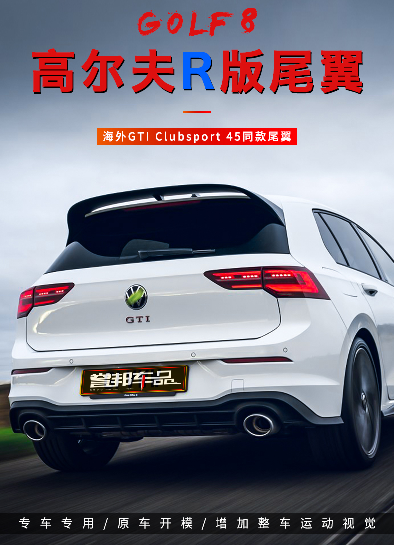 • 폭스바겐 골프 8/2021-2023 - 공백 R 스타일 리어 윙 [구매시 스프레이 페인트 필요]