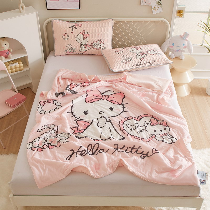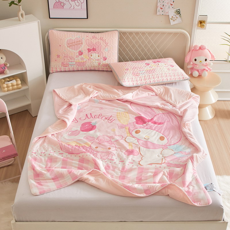 Kulomi Cool Feeling Silky 여름 시원한 퀼트 만화 소녀 여름 기계 세탁 가능한 유치원 얇은 이불