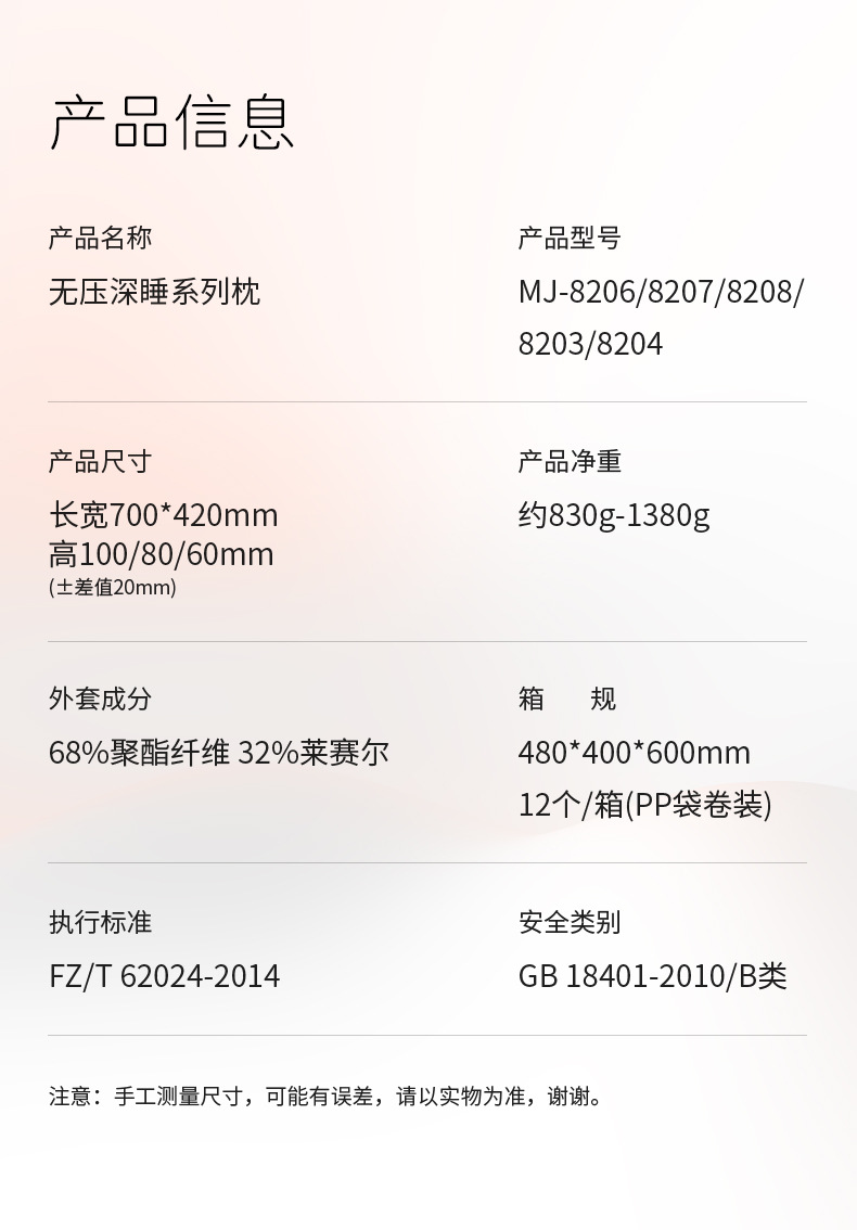 • MJ8207B 2세대 3피스 프로 모델 70*42*8cm 베개 코어 + 내부 커버