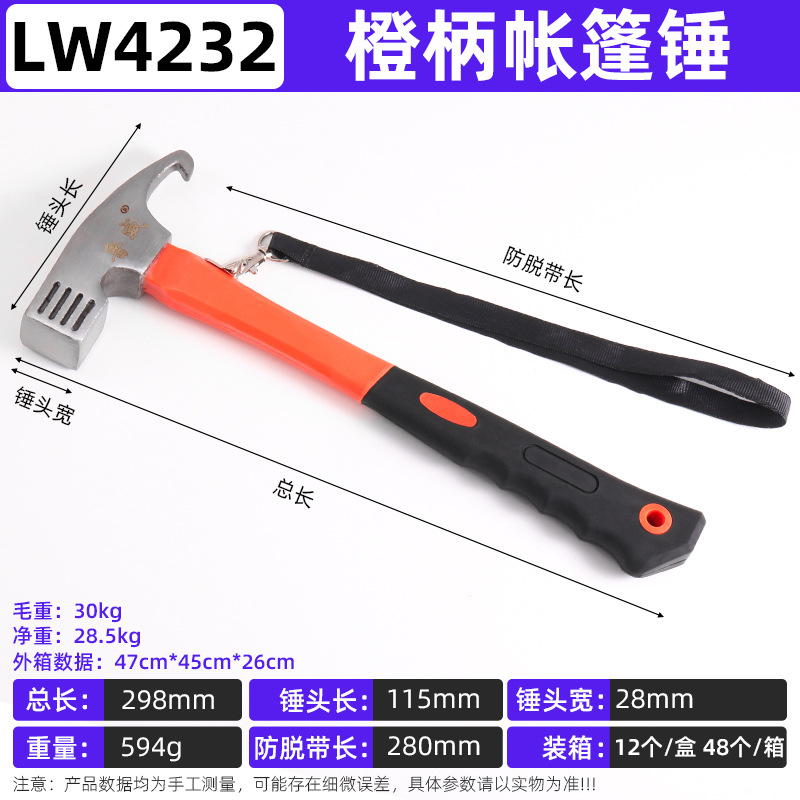 • LW4232 주황색 손잡이 텐트 해머, 600g, 48/상자