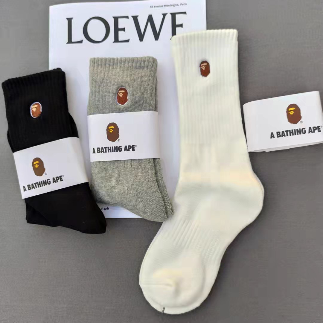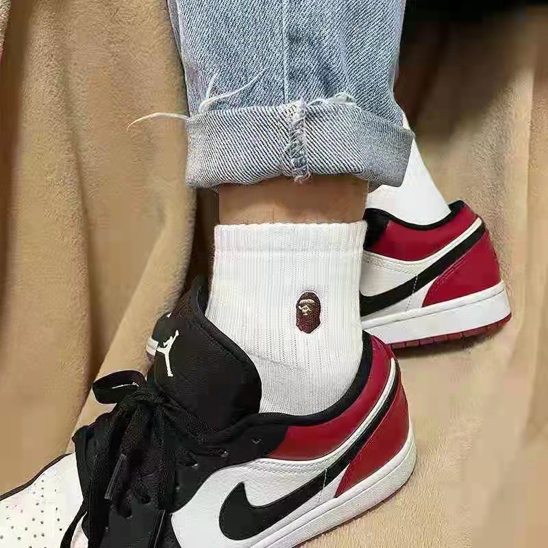 베이프 원숭이 머리 일본 스타일 트렌디 브랜드 남녀 겨울용 따뜻한 타월 바닥 하이삭스 단색 흑백 양말스토어 가기