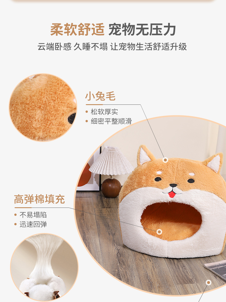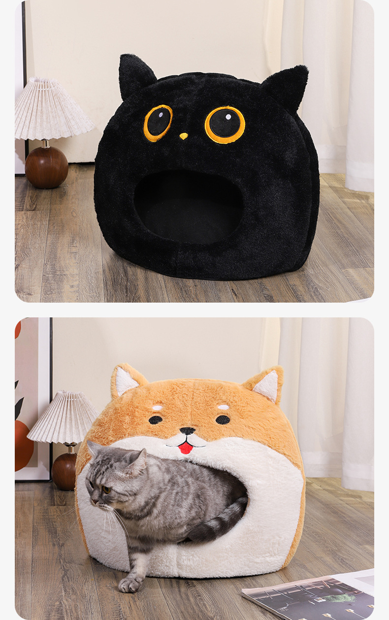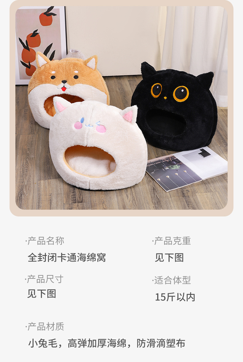 2024 새로운 완전 밀폐형 만화 스폰지 고양이 개집 제조 업체는 사계절 내내 두껍고 따뜻한 애완 동물 개집을 직접 공급합니다.스토어 가기