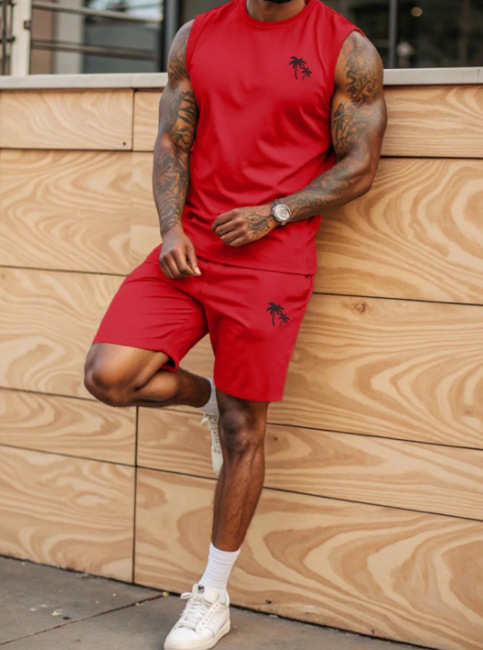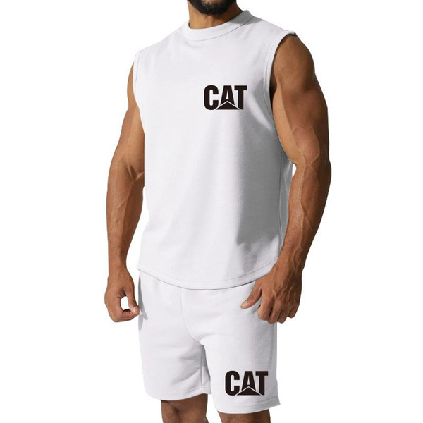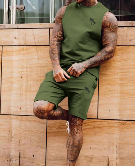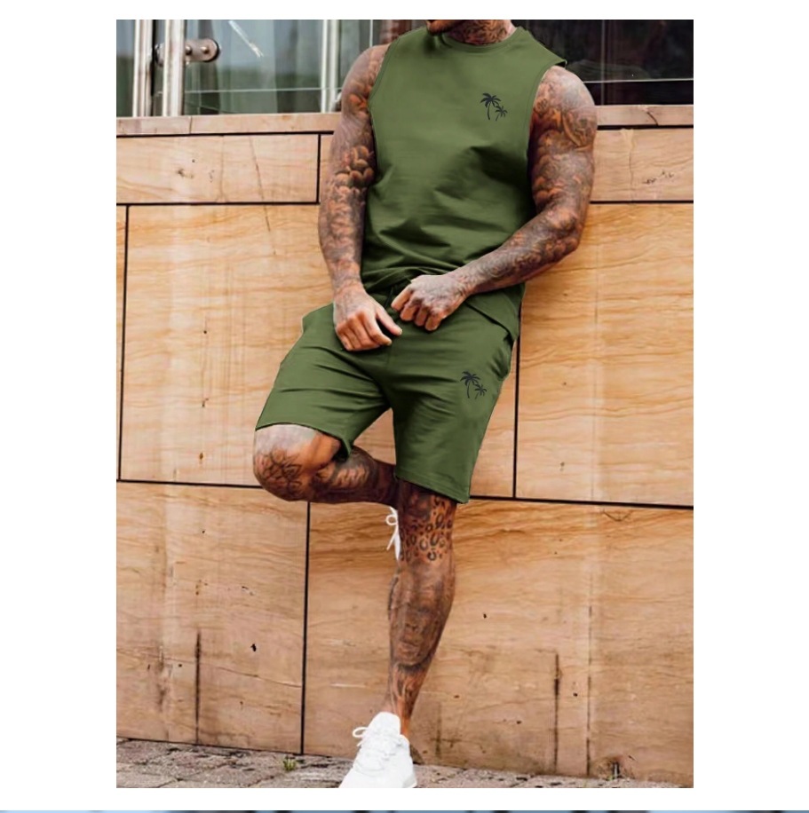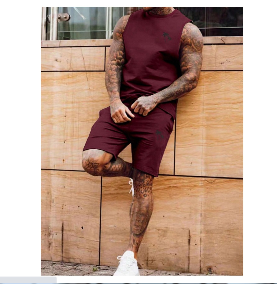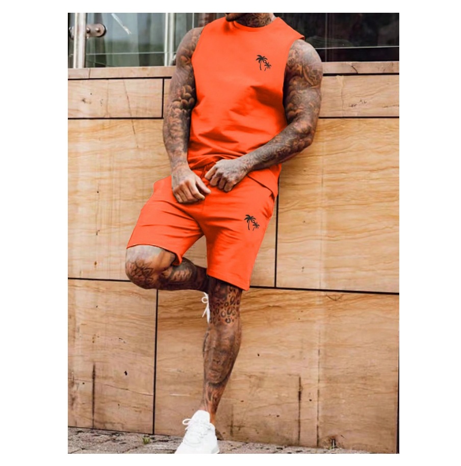 조끼 세트 남자 여름 민소매 반바지 한국 스타일 느슨한 간단한 단색 외부 MG2 MA1 착용