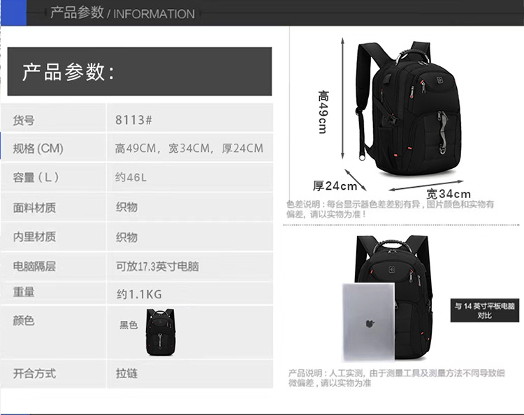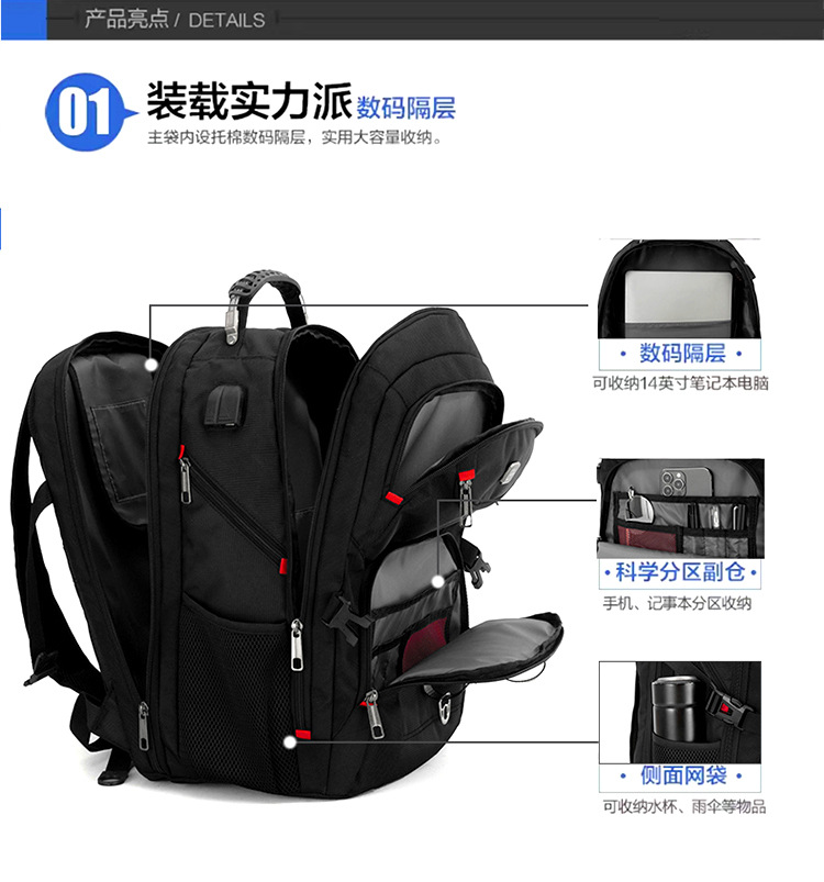 국경 도매 배낭 남성 대용량 비즈니스 여행 배낭 블랙 다기능 노트북 학교 가방