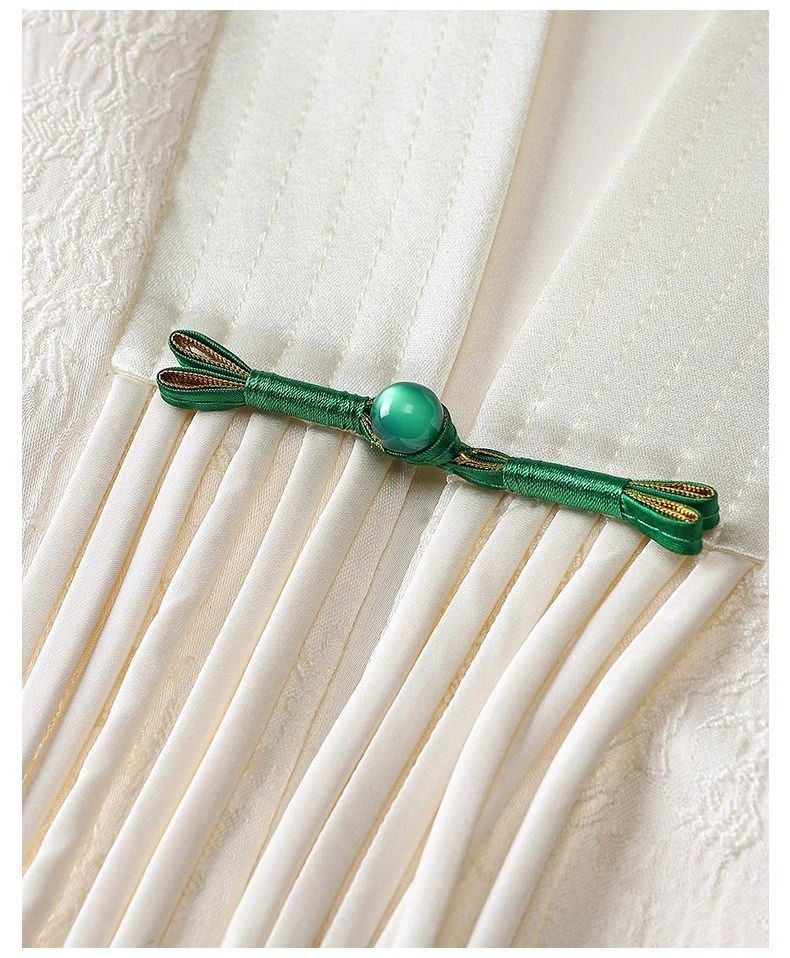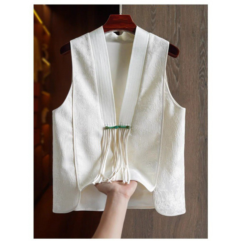 빈티지 자카드 국가 스타일 V-Neck 버클 스택 탑이있는 화이트 하이 엔드 새로운 중국 스타일 여성 조끼