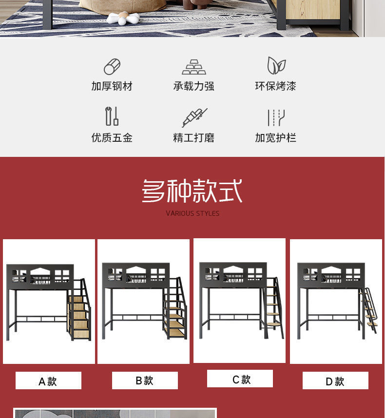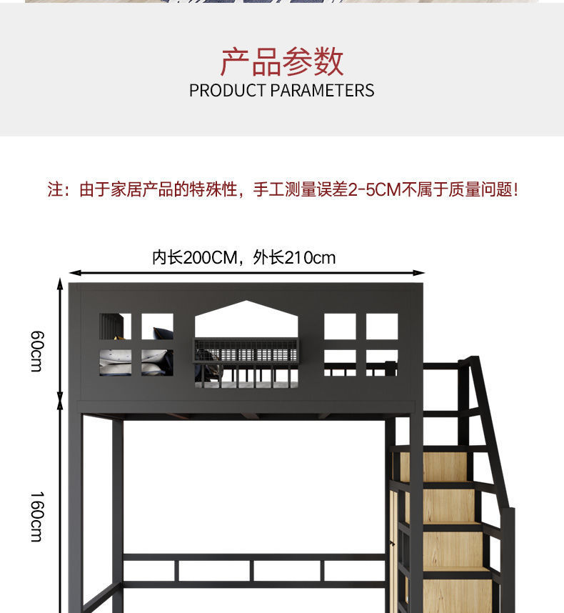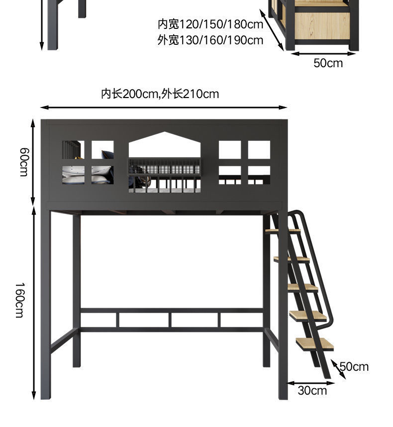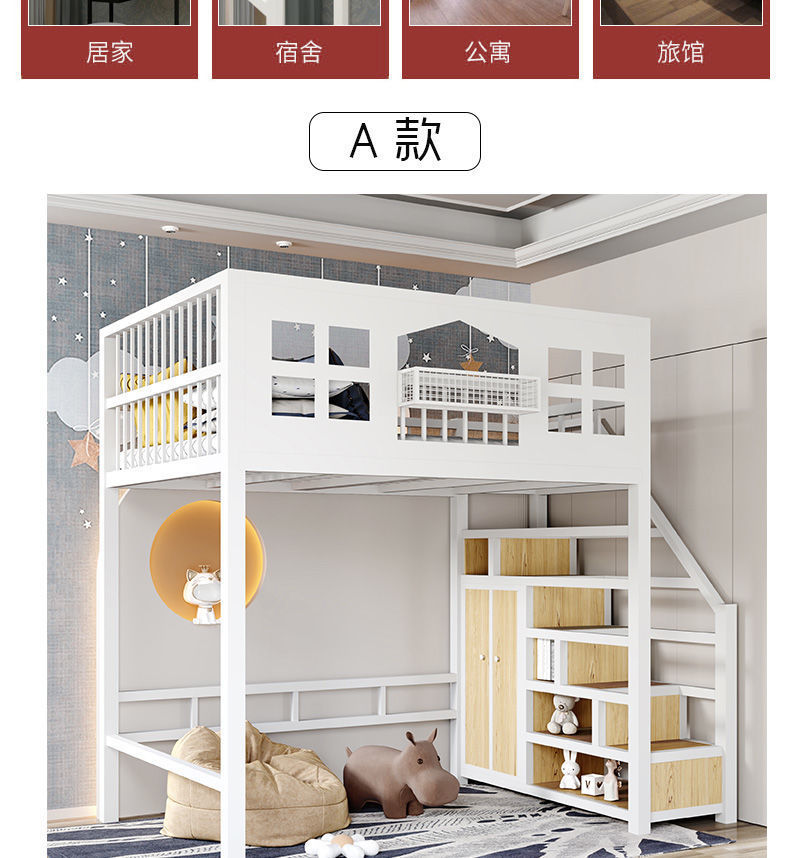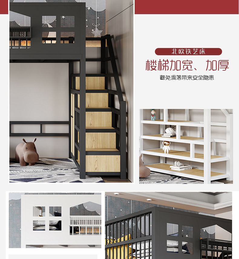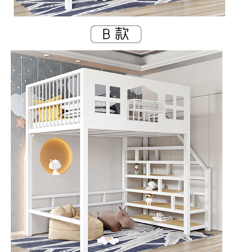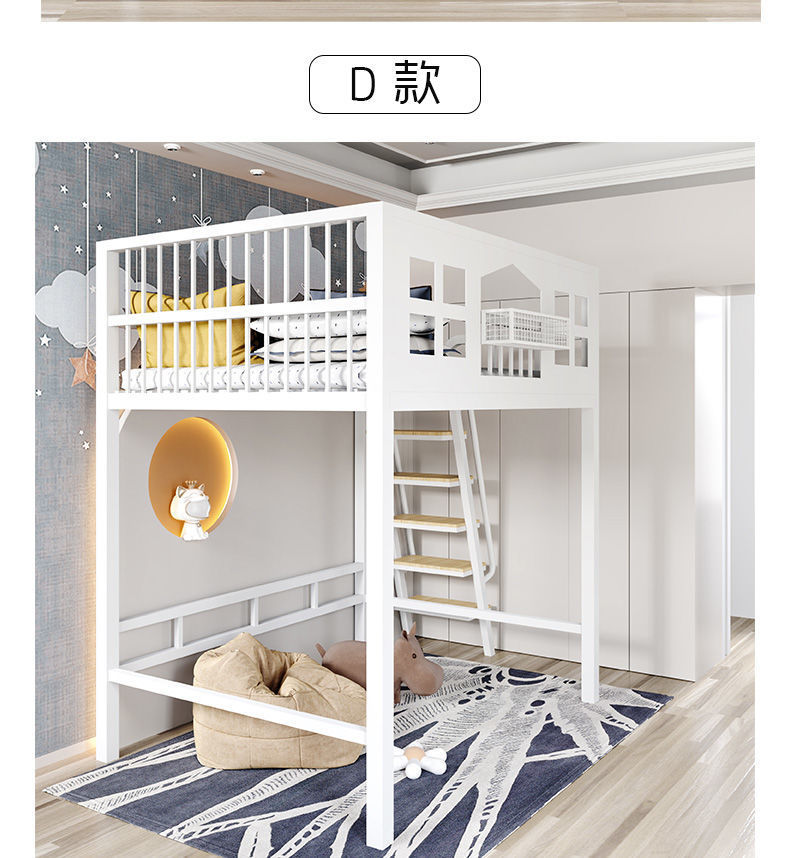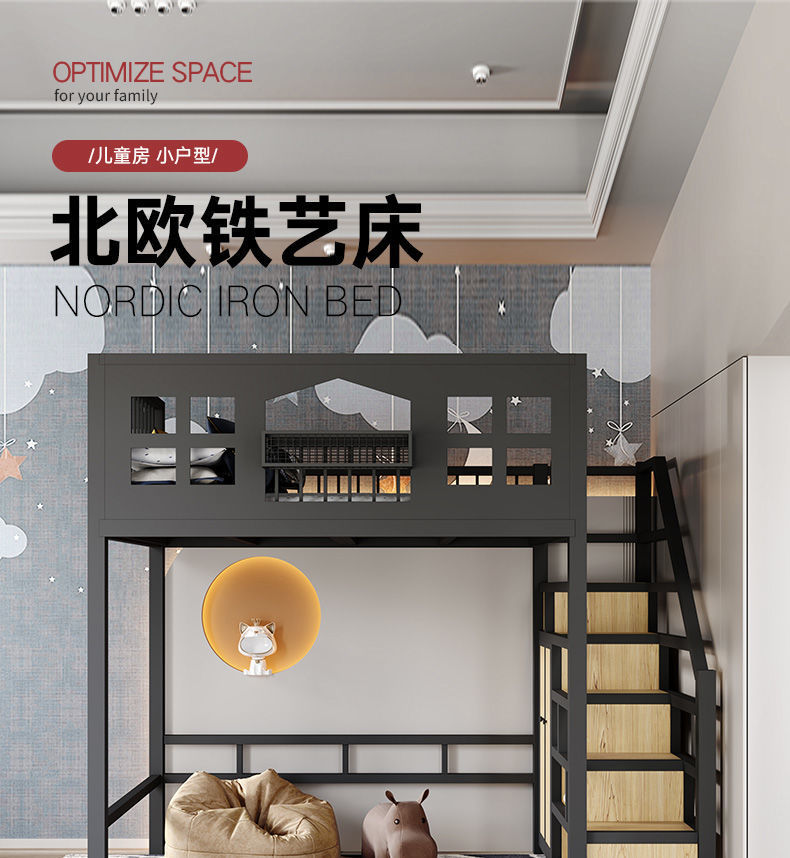 FLE 노르딕 두꺼운 철 프레임 침대 작은 아파트 공간 절약형 철 침대 높고 낮은 침대 듀플렉스 싱글 어퍼 로프트 침대스토어 가기