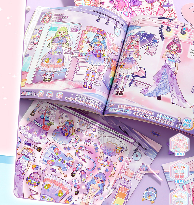 핵심 모 소녀 원피스 책 다양한 경력 원피스 업 스티커 책 어린이 어린 소녀 그림 장난감 스티커 세트
