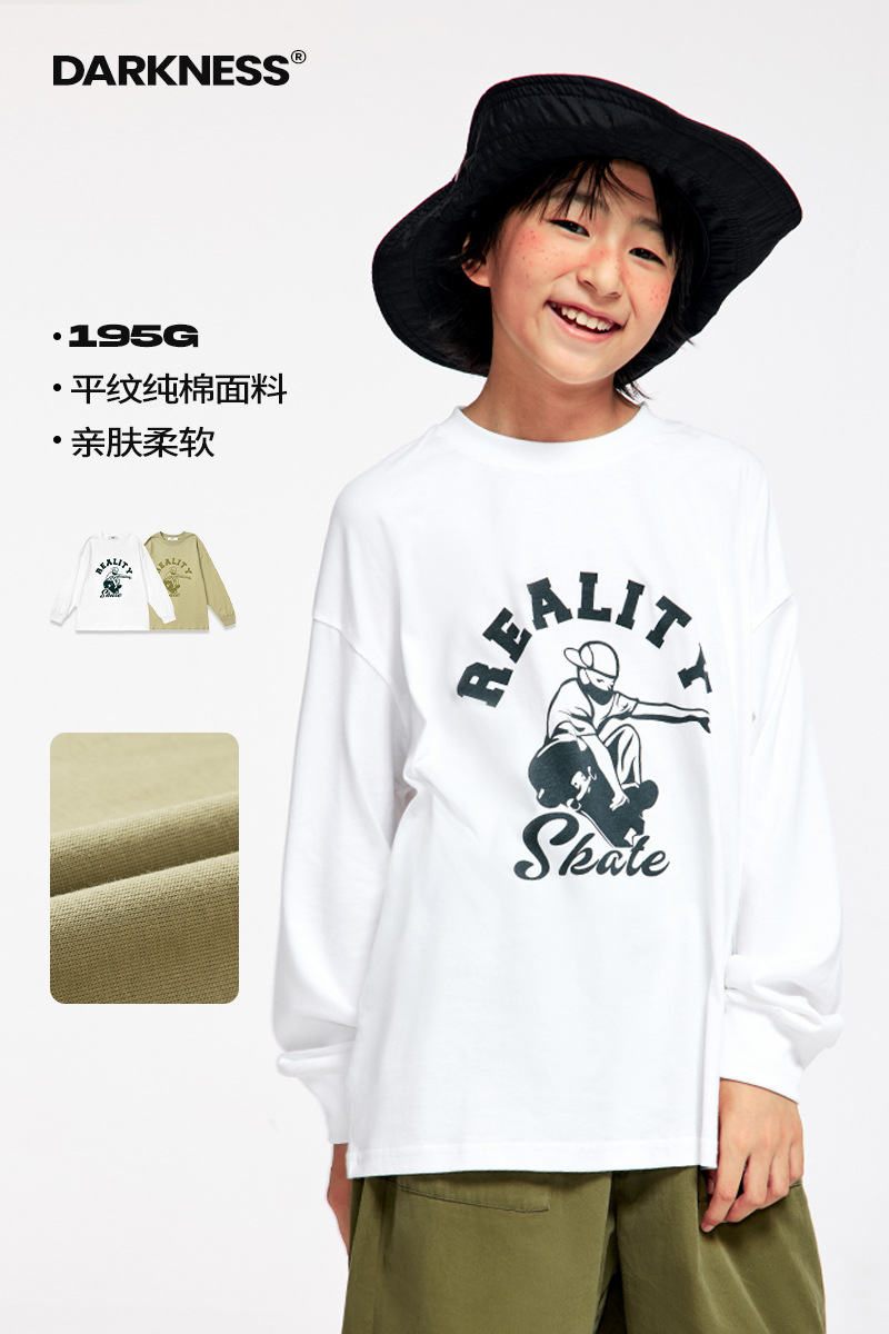 DK 아동복 새로운 가을 소녀 및 소년 긴팔 티셔츠 중형 및 대형 아동용 순수 코튼 캐주얼 바닥 셔츠 탑 얇은 섹션