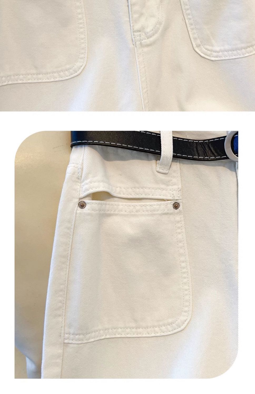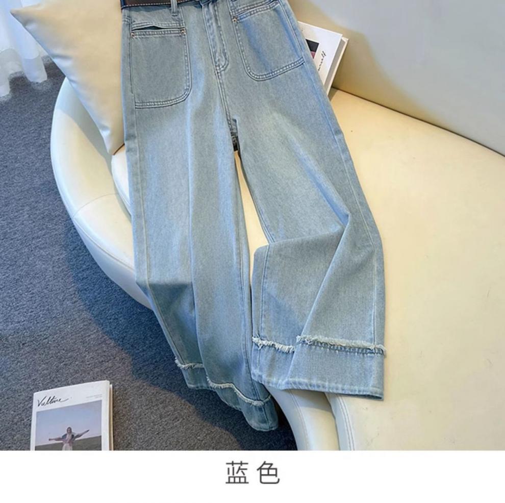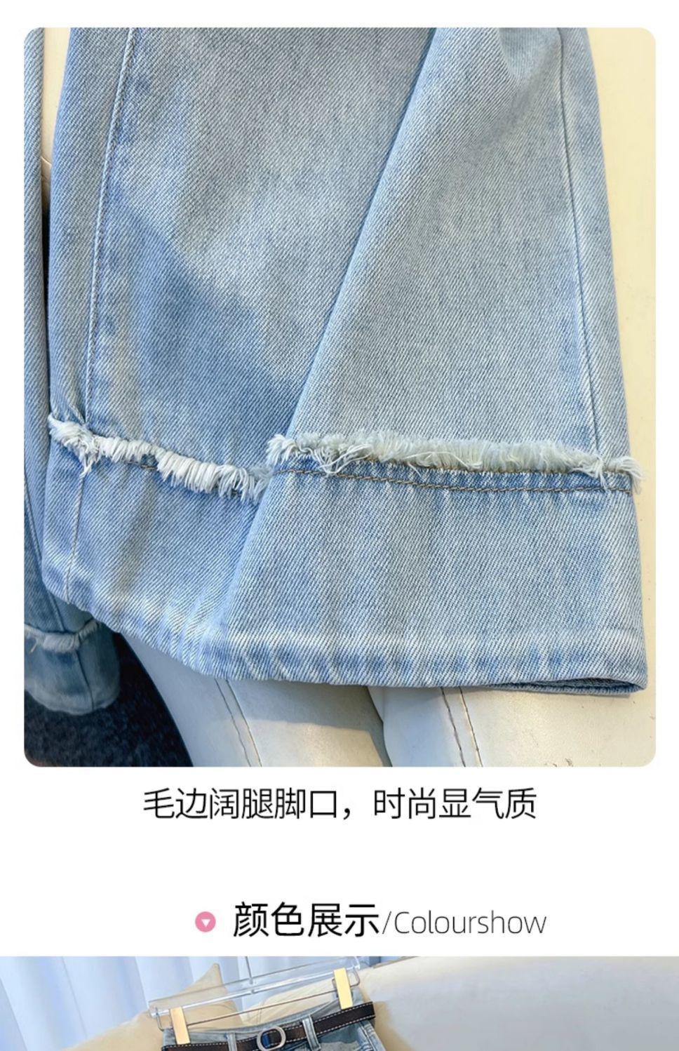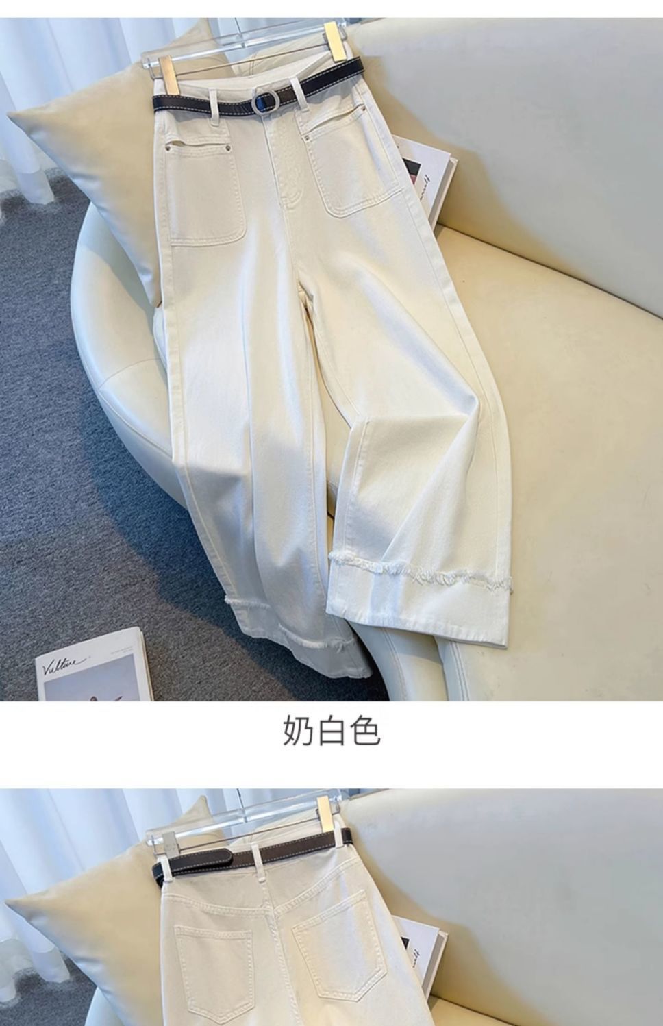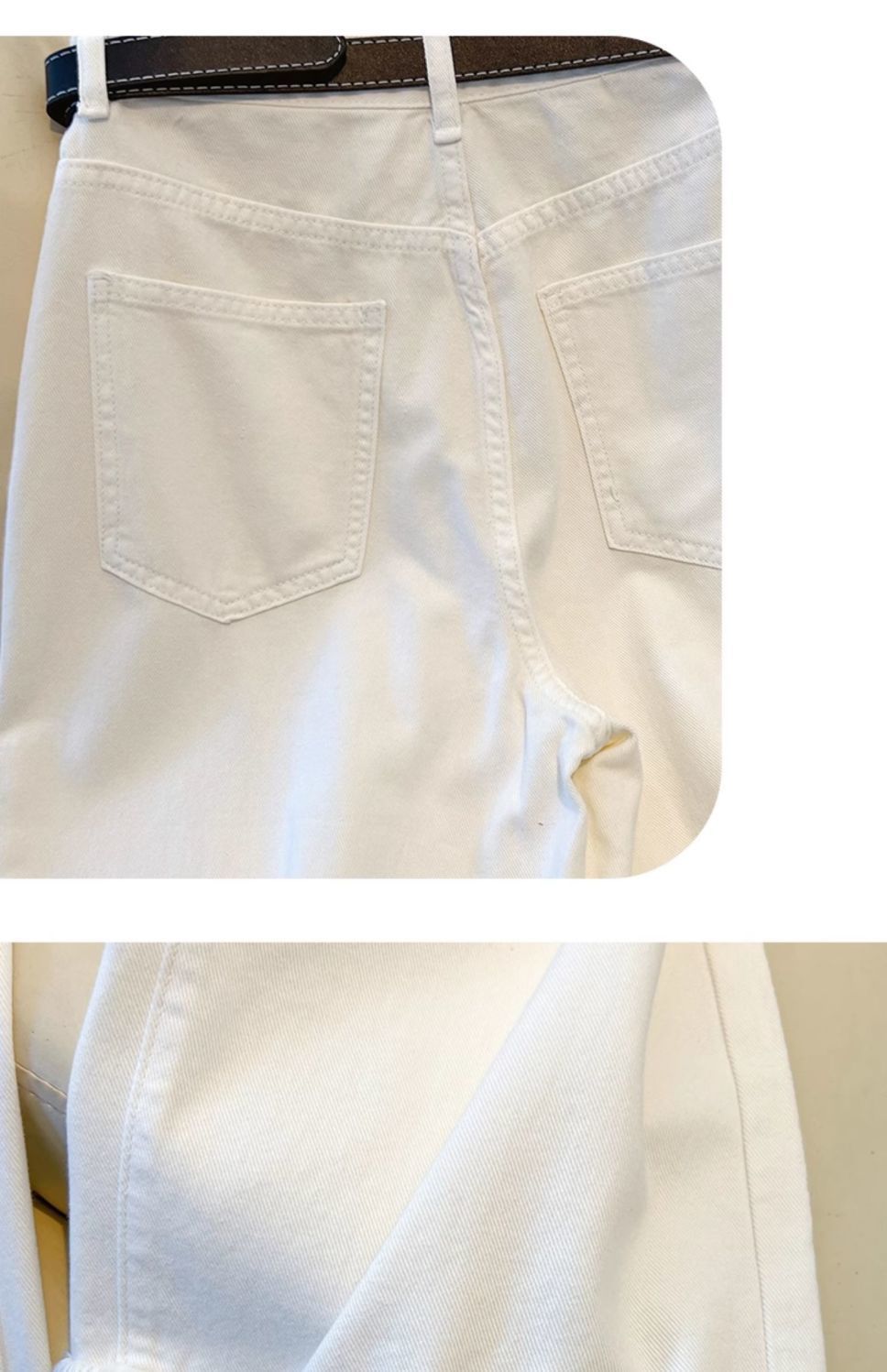 화이트 청바지 넓은 다리 바지 여성용 여름 얇은 바지 2024 새로운 높은 허리 짧은 직선 바지스토어 가기