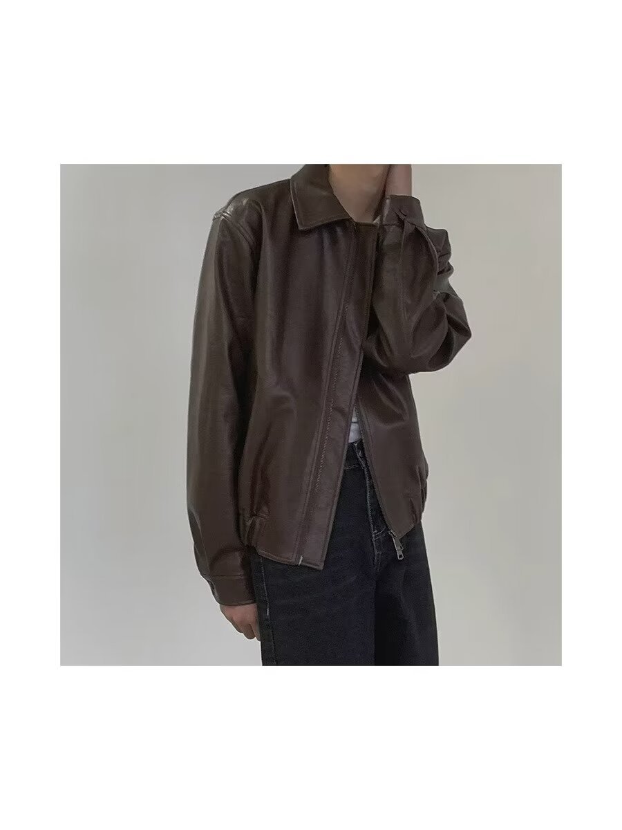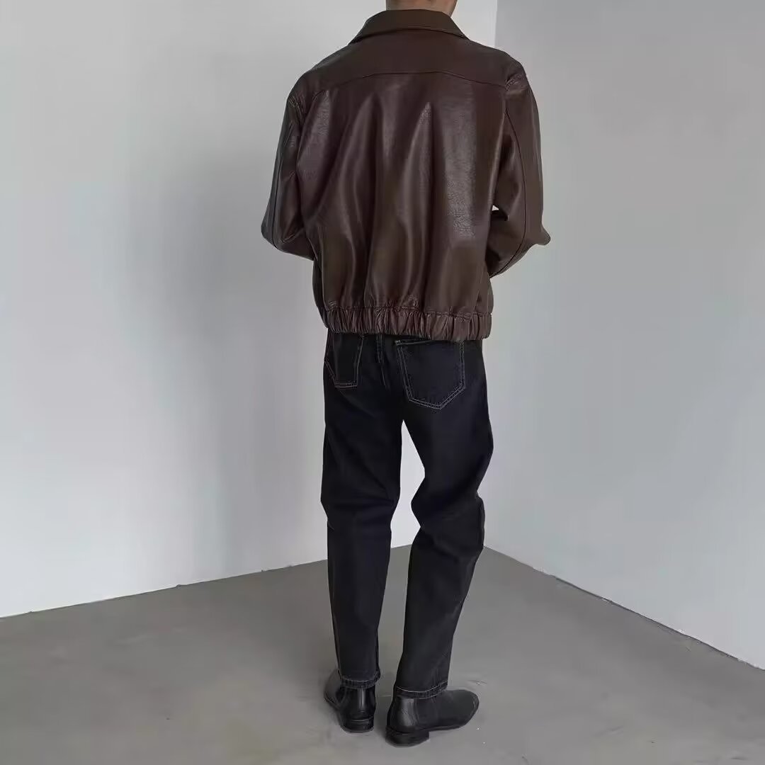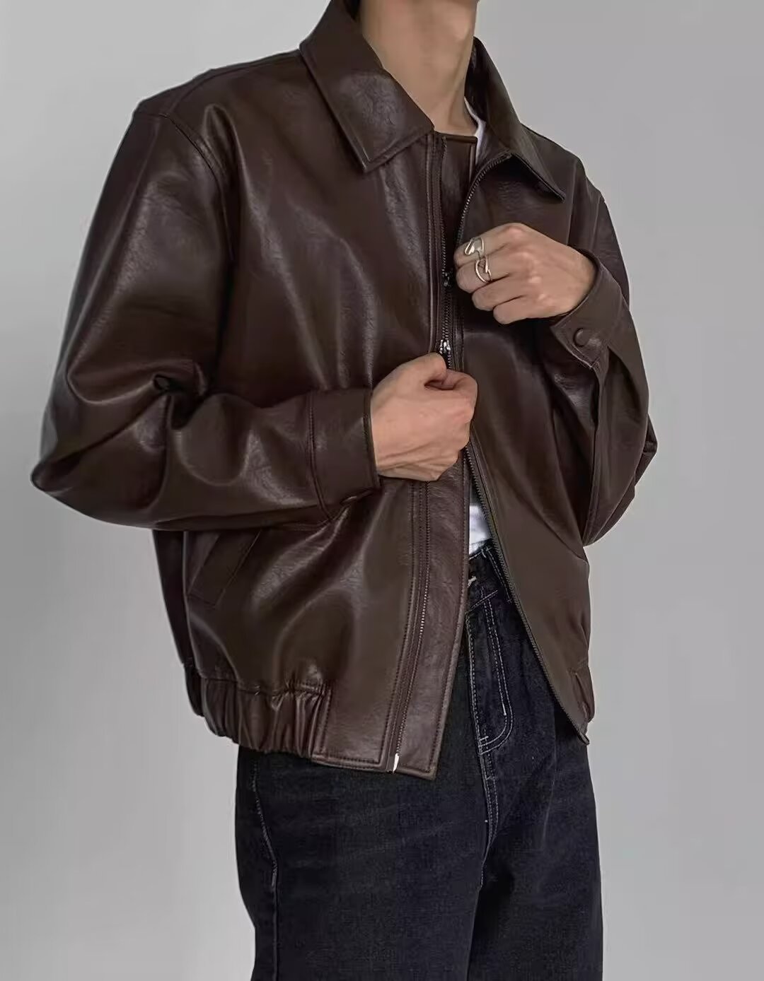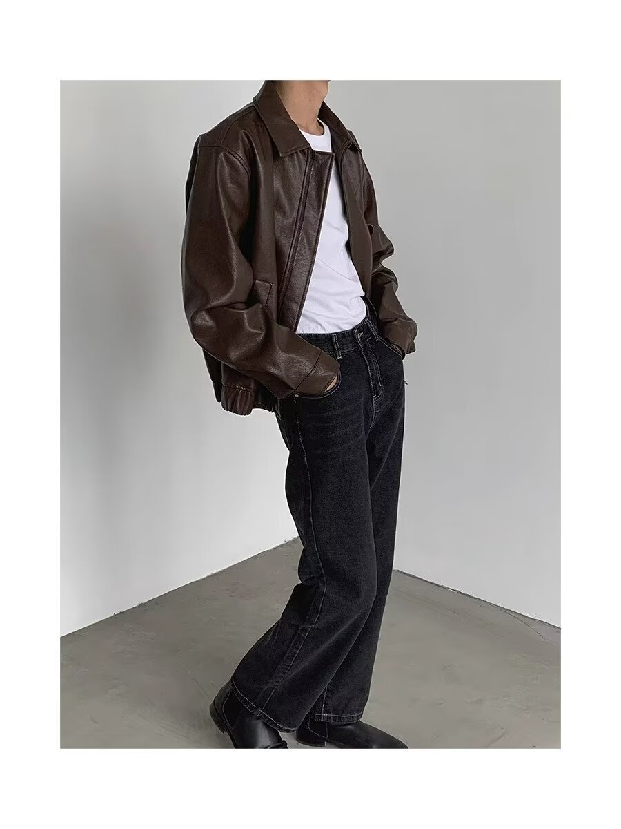 2024 봄과 가을 새로운 레트로 오토바이 PU 가죽 남성용 루즈 트렌디 스트리트 재킷 캐주얼 옷깃 재킷
