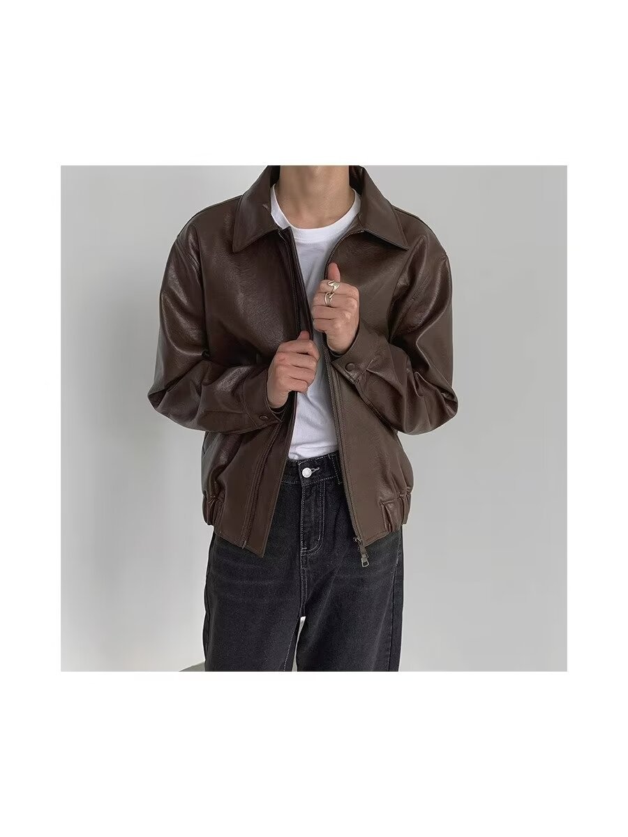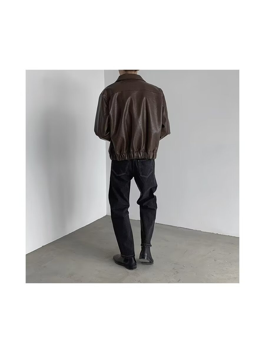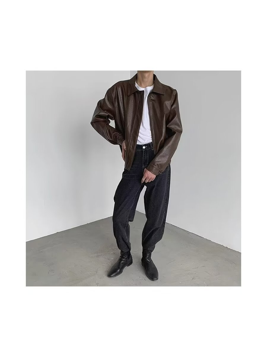 2024 봄과 가을 새로운 레트로 오토바이 PU 가죽 남성용 루즈 트렌디 스트리트 재킷 캐주얼 옷깃 재킷스토어 가기