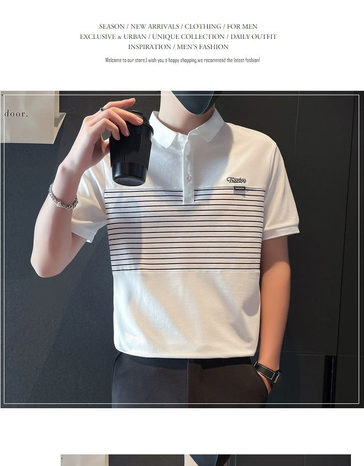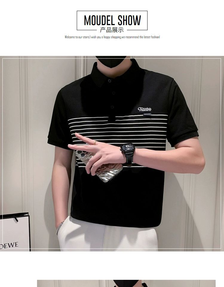 남자 반팔 폴로 셔츠 유행 브랜드 여름 새로운 도착 줄무늬 패치 워크 옷깃 티셔츠 핸섬 올 매치 반소매 여름 원피스스토어 가기