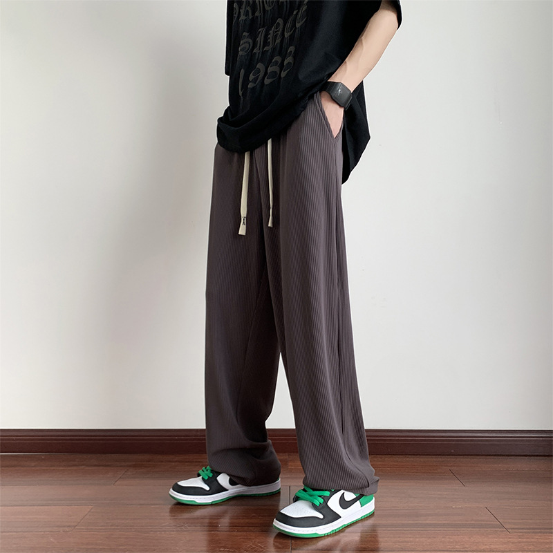 남자 다이퍼 다크 브라운 아이스 실크 바지 여름 아메리칸 스타일 얇은 캐주얼 하이 스트리트 트렌디 브랜드 느슨한 스트레이트 와이드 다리 바지