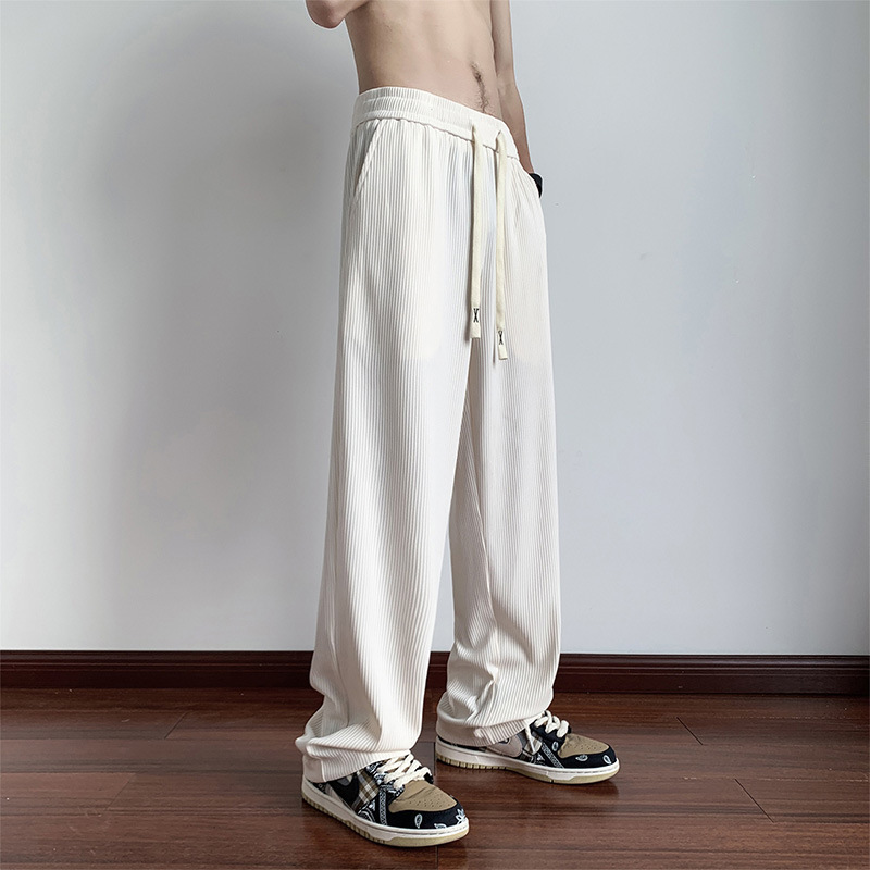 남자 다이퍼 다크 브라운 아이스 실크 바지 여름 아메리칸 스타일 얇은 캐주얼 하이 스트리트 트렌디 브랜드 느슨한 스트레이트 와이드 다리 바지스토어 가기