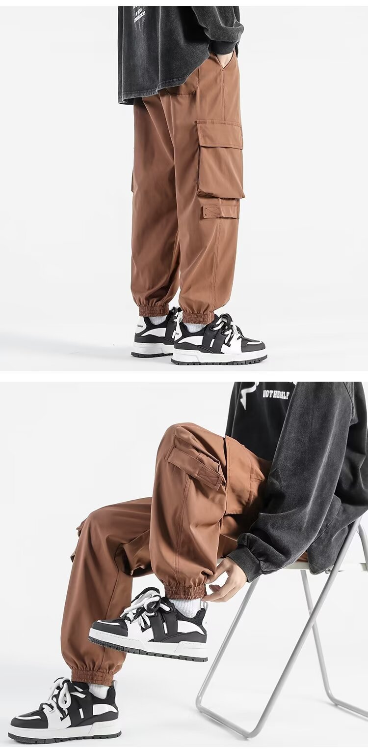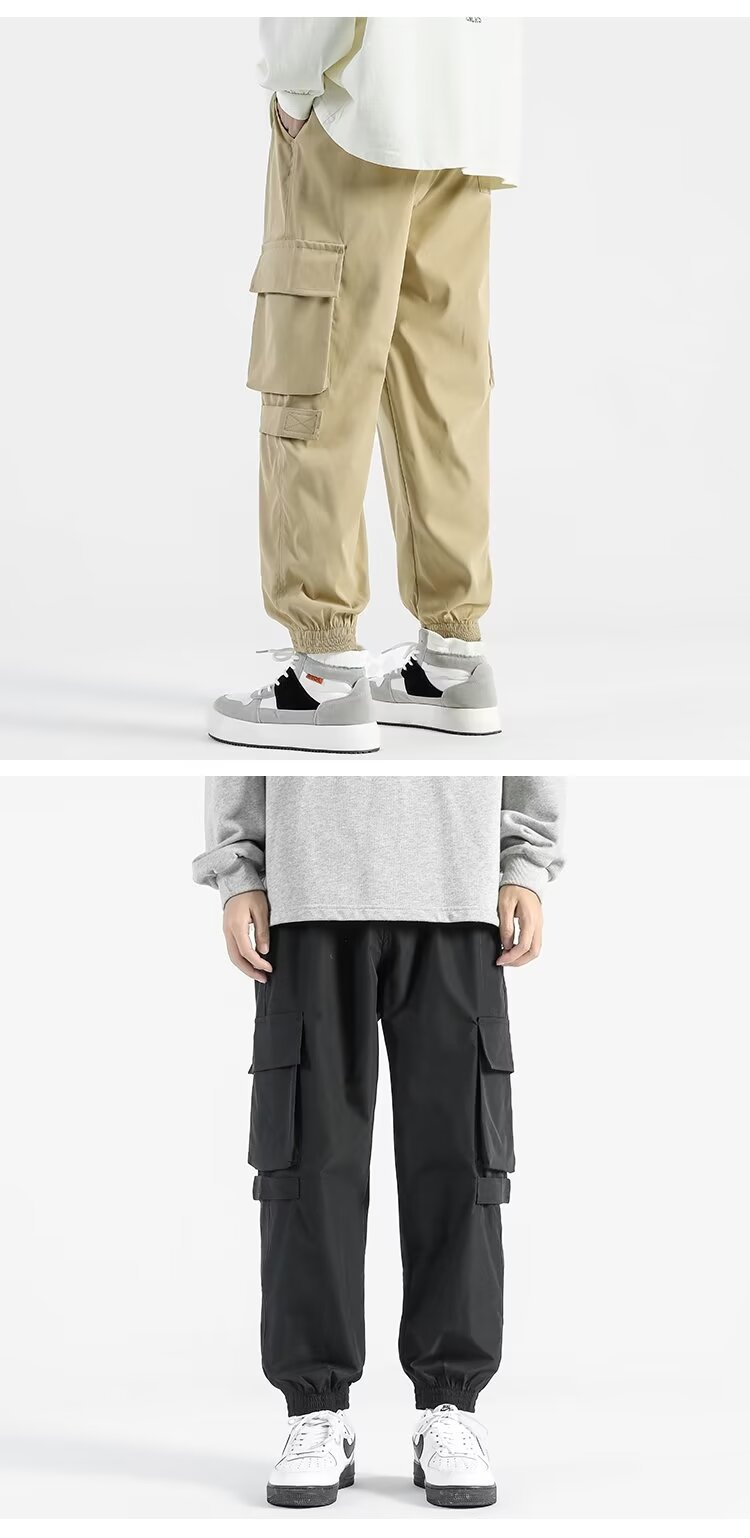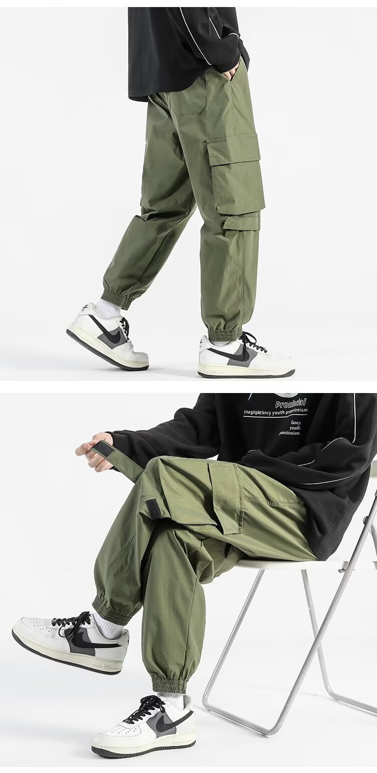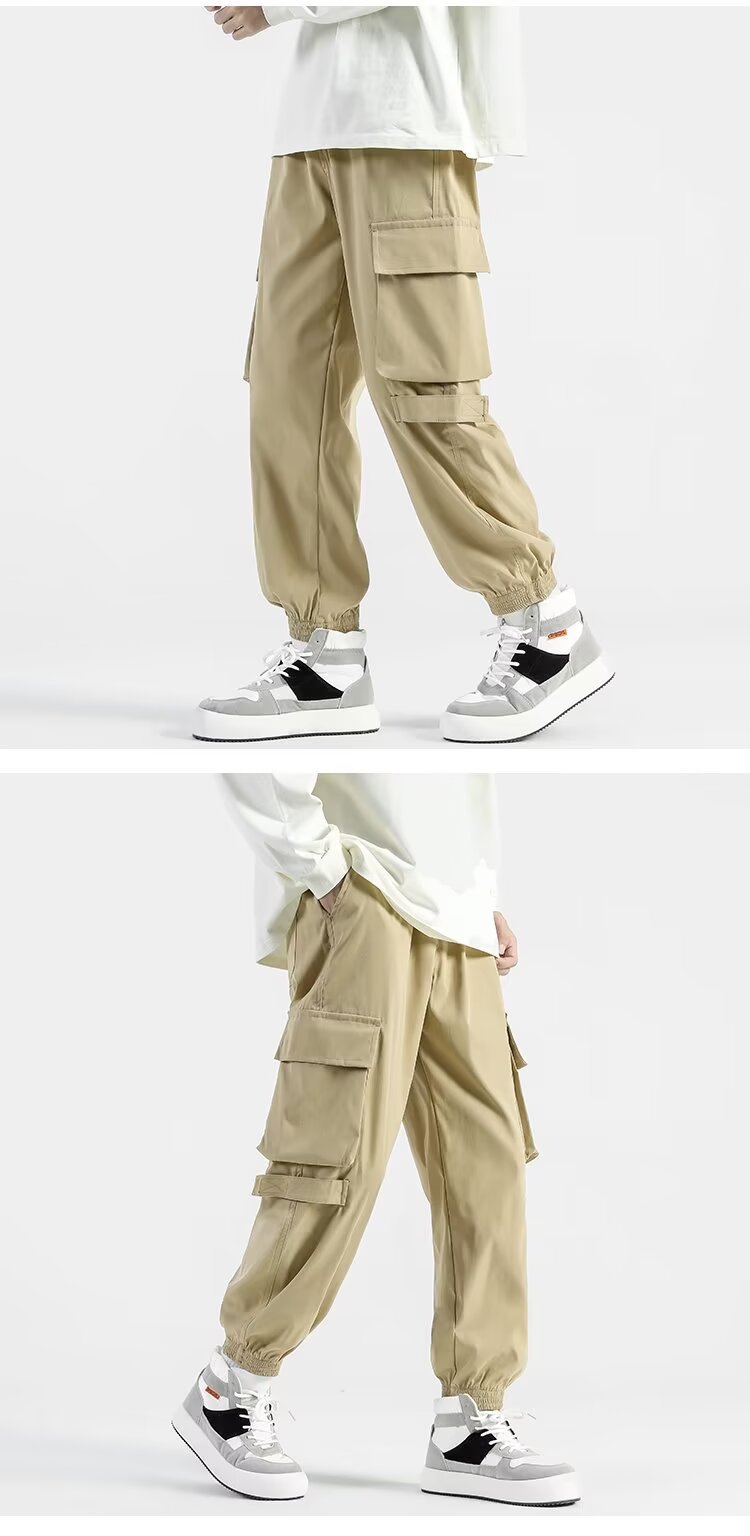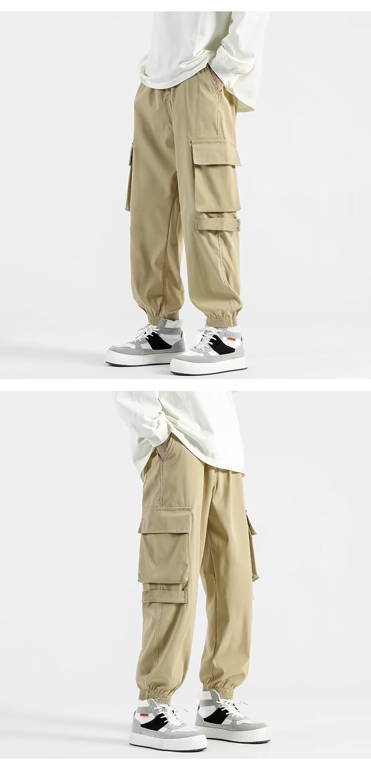 여름 얇은 오버올의 엄격한 선택 남자 미국 패션 느슨한 스포츠 캐주얼 바지 모든 경기 멀티 포켓 긴 바지