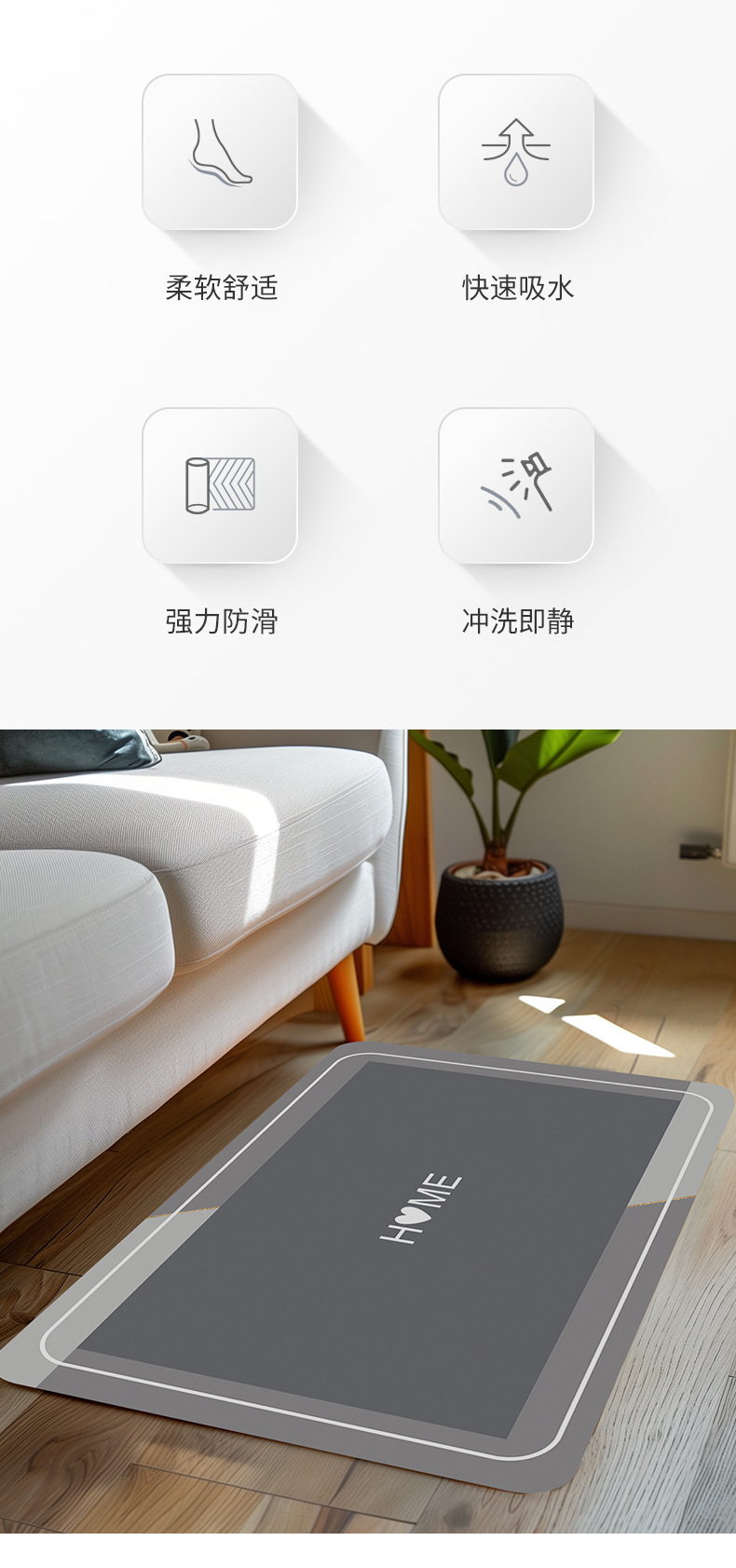 가정용 규조토 진흙 바닥 매트, 문, 얼룩 방지, 입구 문, 욕실, 흡수성 미끄럼 방지 매트, 주방 및 욕실 발 매트스토어 가기