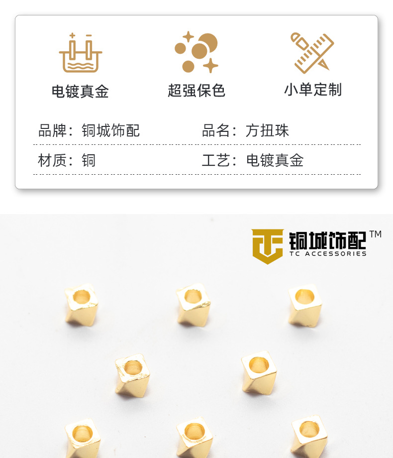 14K 골드 스퀘어 트위스트 비즈 컬러 보존 리얼 골드 다이아몬드 구슬 수제 DIY 팔찌 구슬 액세서리 모양의 느슨한 구슬스토어 가기