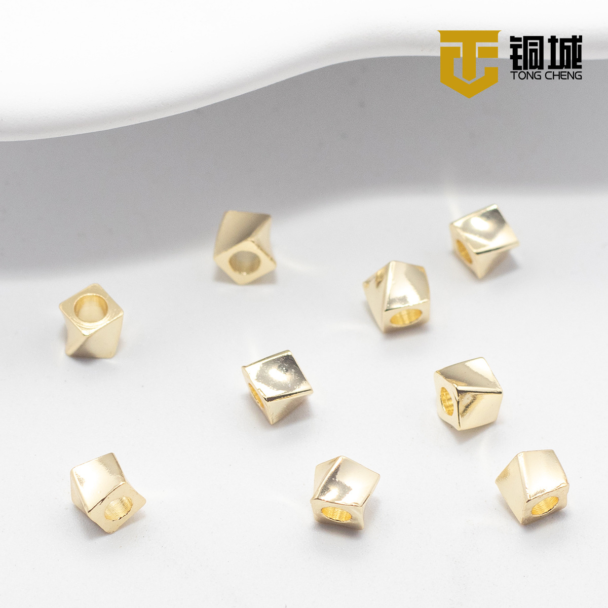 14K 골드 스퀘어 트위스트 비즈 컬러 보존 리얼 골드 다이아몬드 구슬 수제 DIY 팔찌 구슬 액세서리 모양의 느슨한 구슬