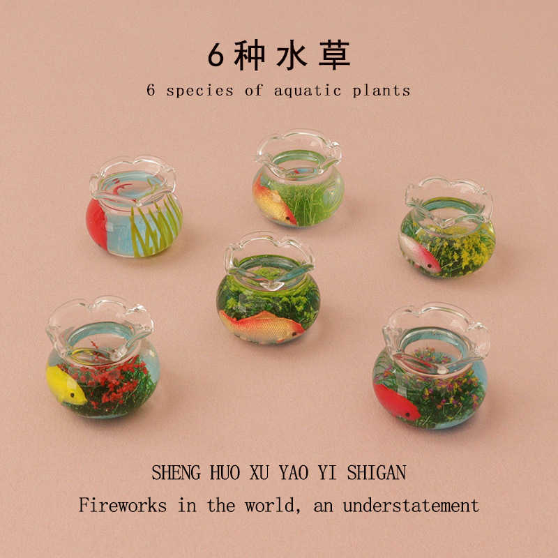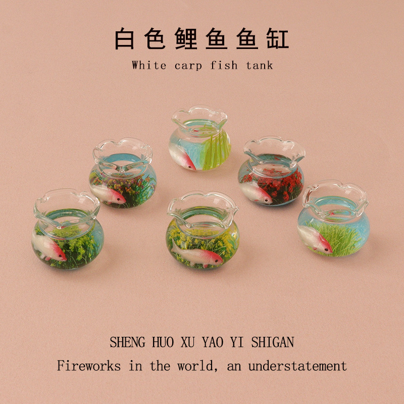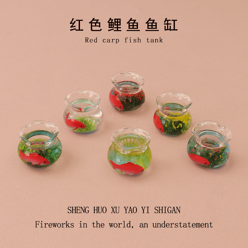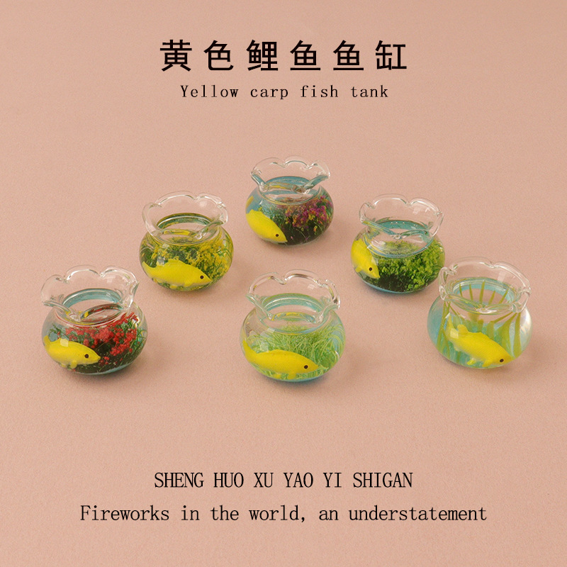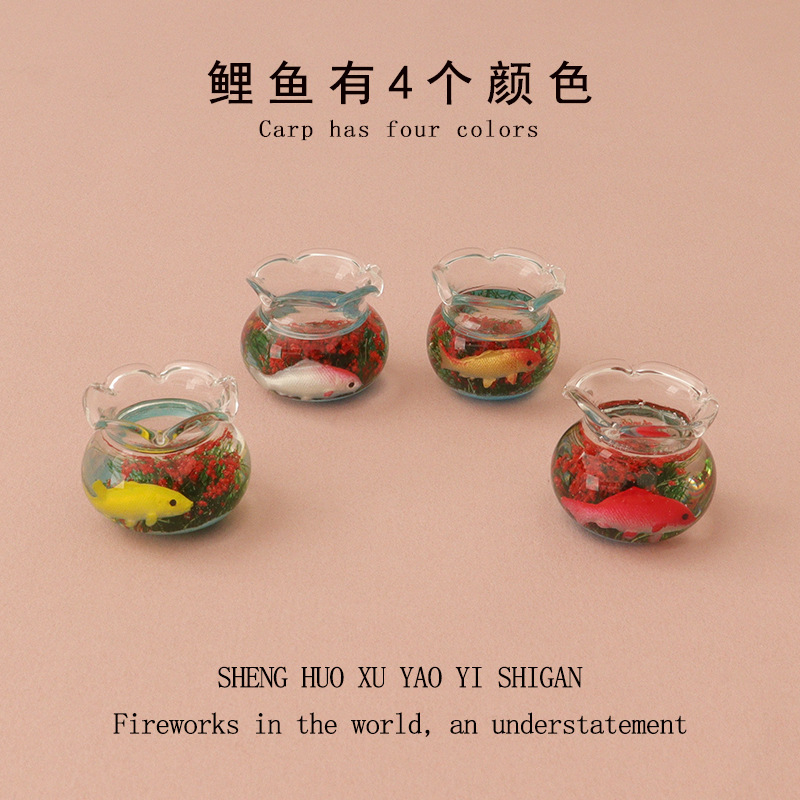 미니어처 시뮬레이션 미니 유리 잉어 물 잔디 물고기 탱크 귀여운 치유 마이크로 풍경 인형 집 장식 장식품 OB11스토어 가기