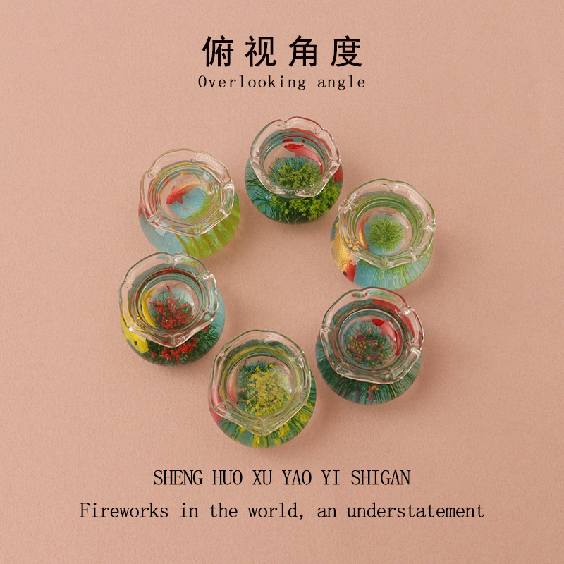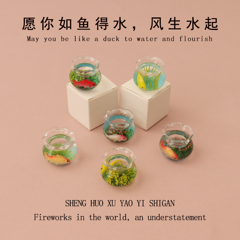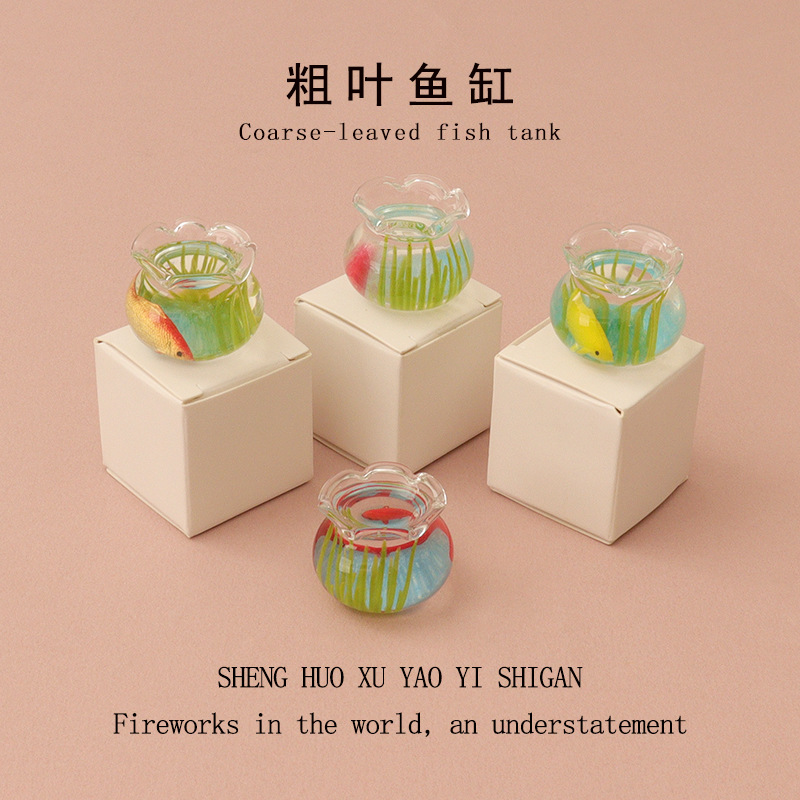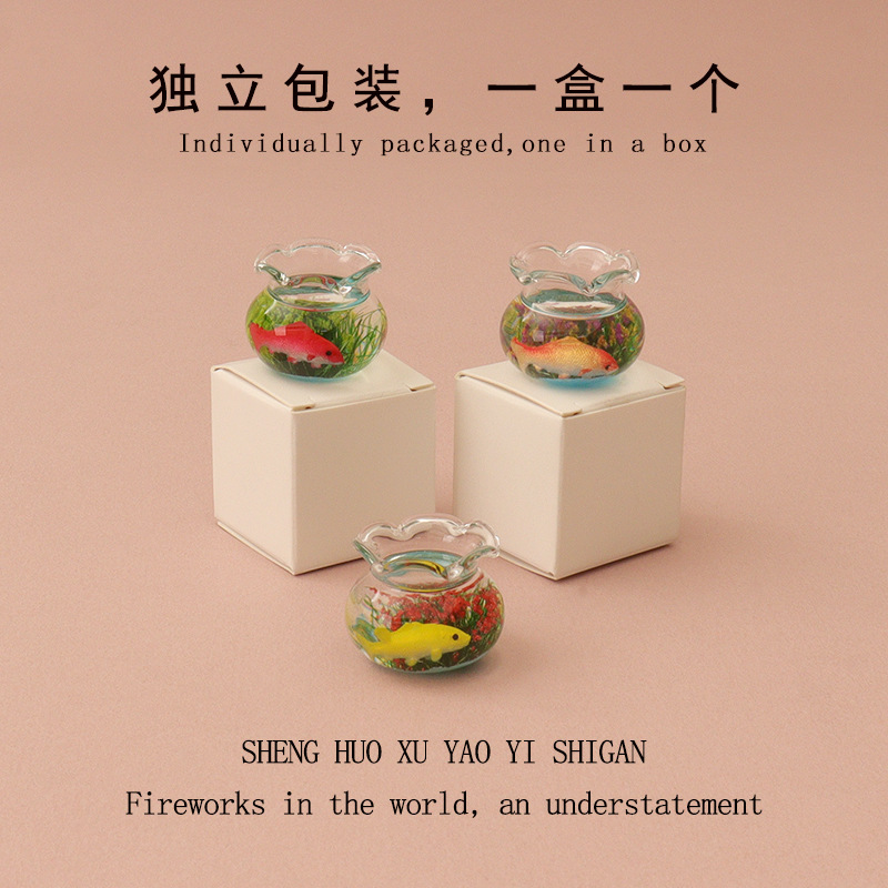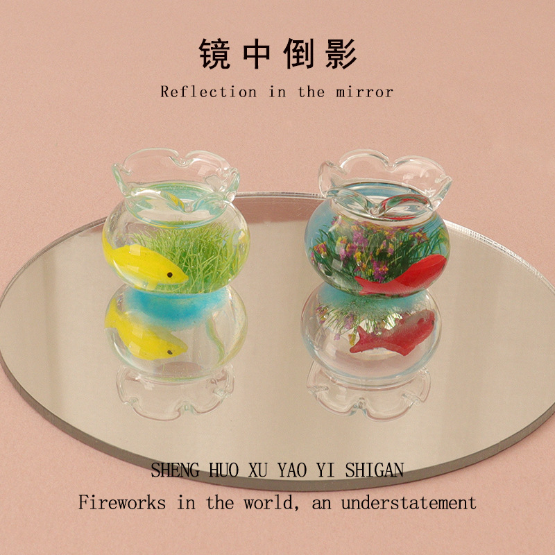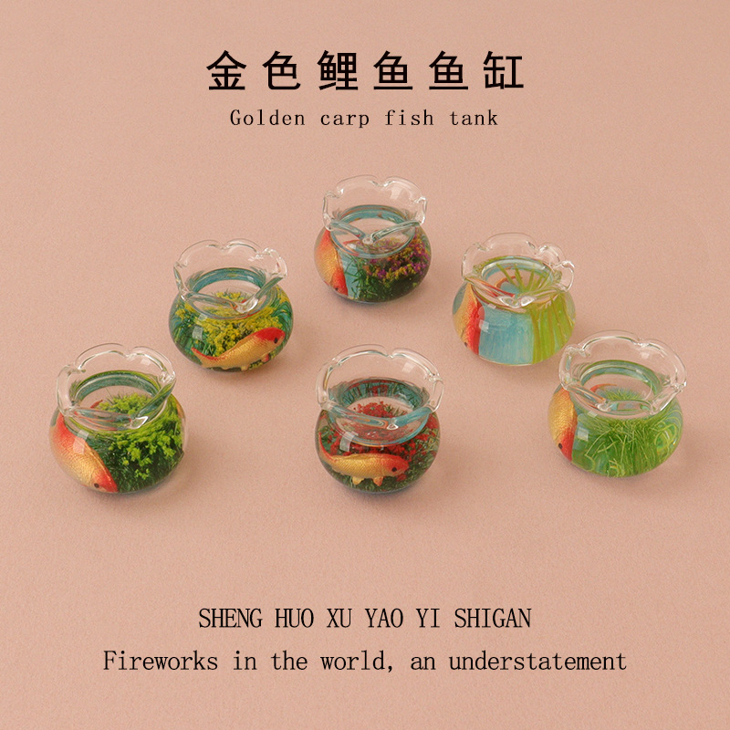 미니어처 시뮬레이션 미니 유리 잉어 물 잔디 물고기 탱크 귀여운 치유 마이크로 풍경 인형 집 장식 장식품 OB11스토어 가기