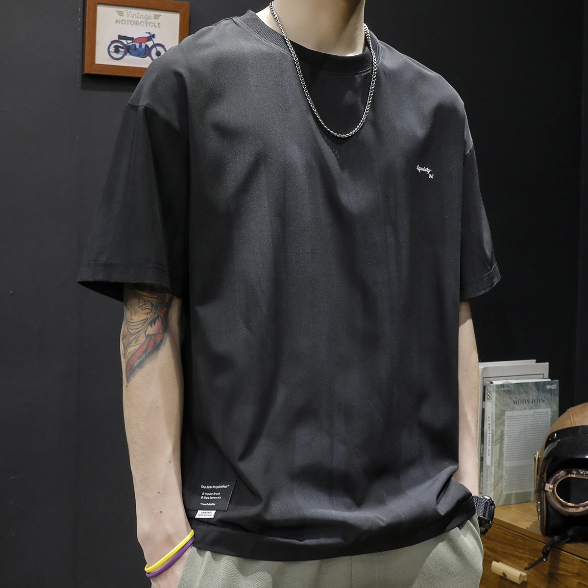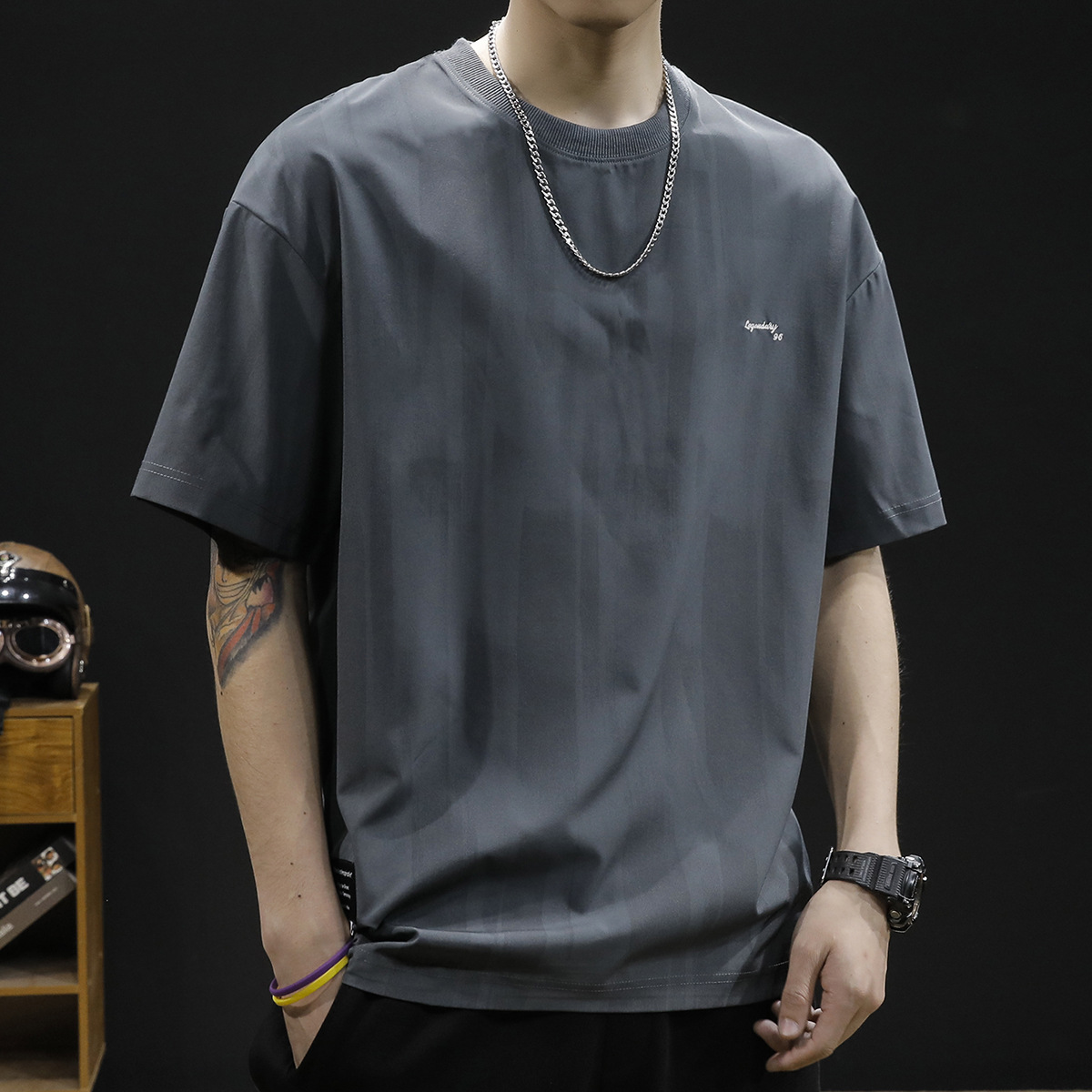 일본식 아이스 실크 반팔 티셔츠 남자 여름 뉴 루즈 플러스 사이즈 플러스 사이즈 반소매 얇은 퀵 드라이 라운드 넥 티셔츠스토어 가기