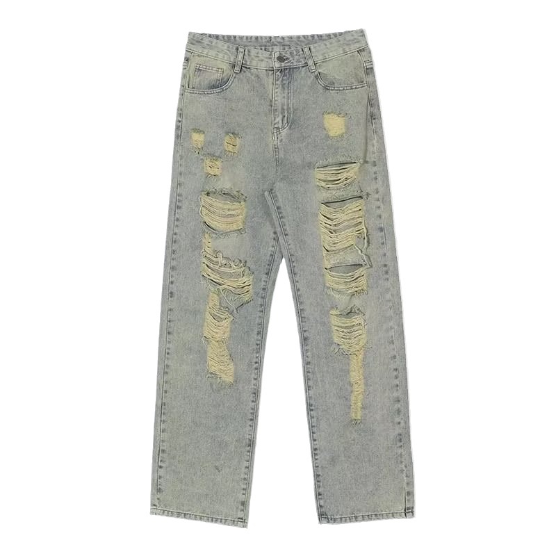 찢어진 청바지 남성 여름 얇은 미국 스타일 hiphop 사용 바지 하이 스트리트 패션 브랜드 플러스 사이즈 스트레이트 바지스토어 가기