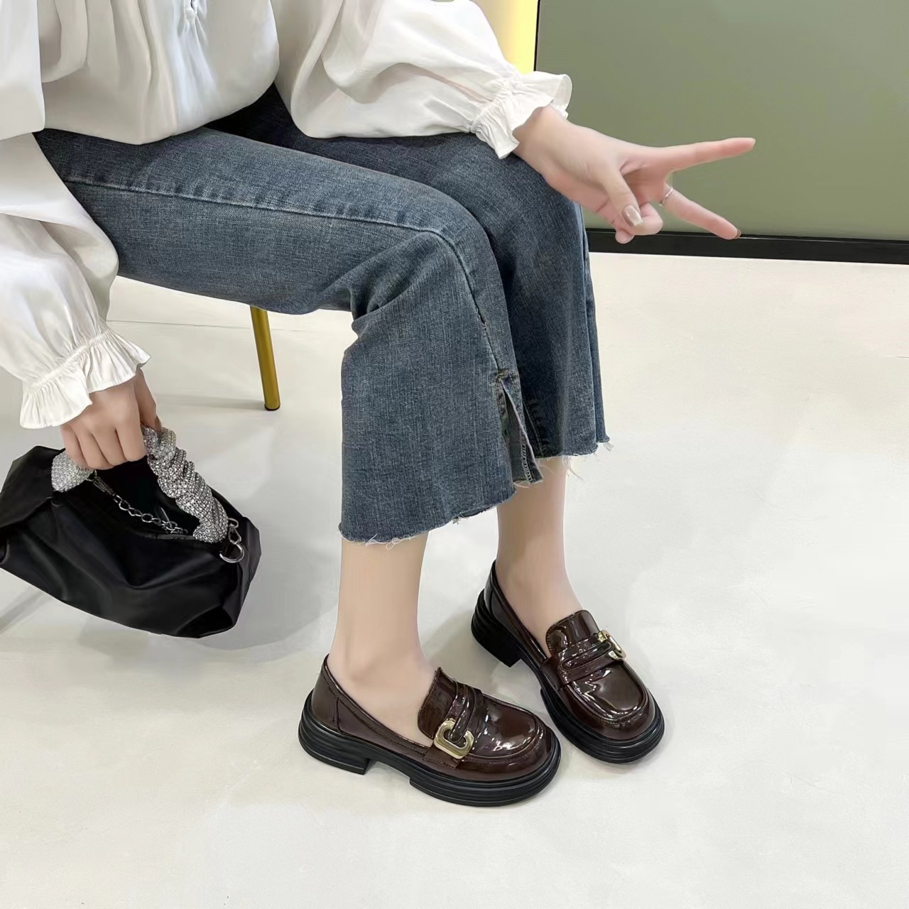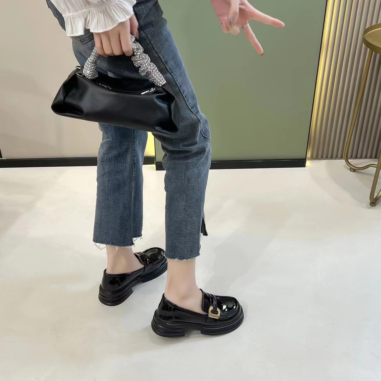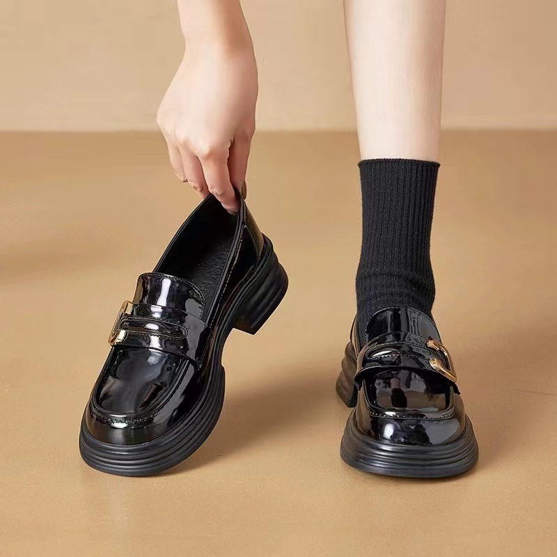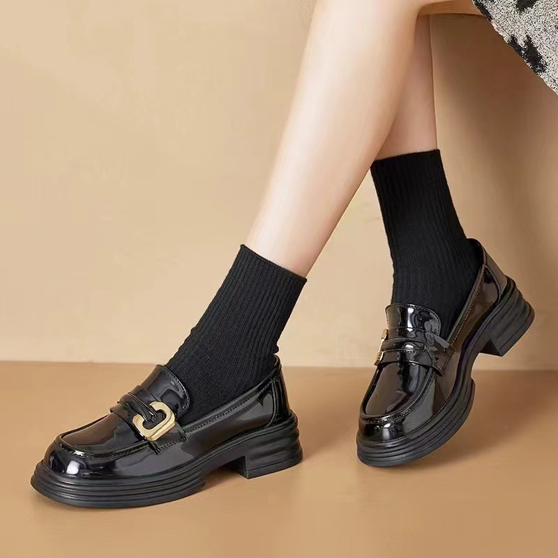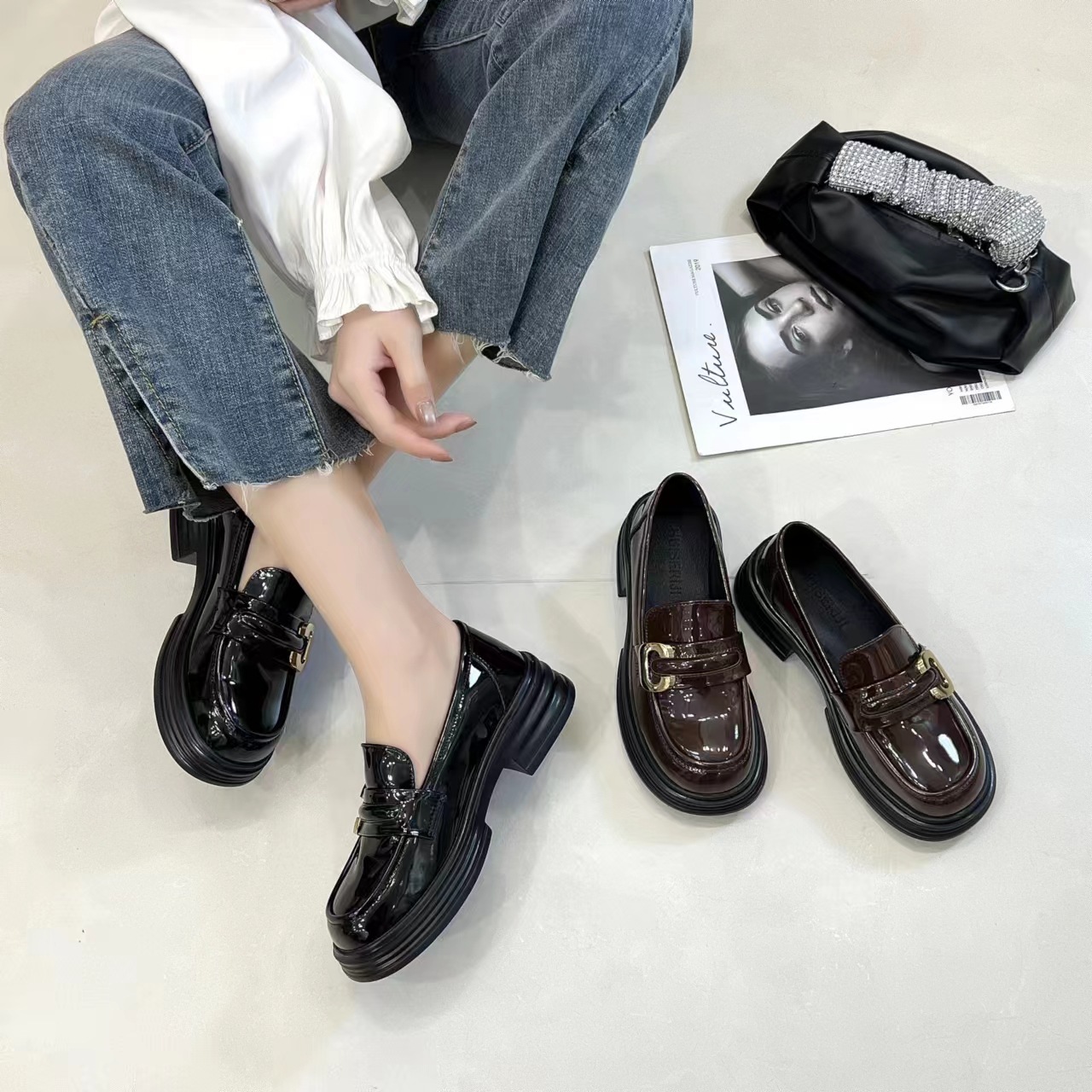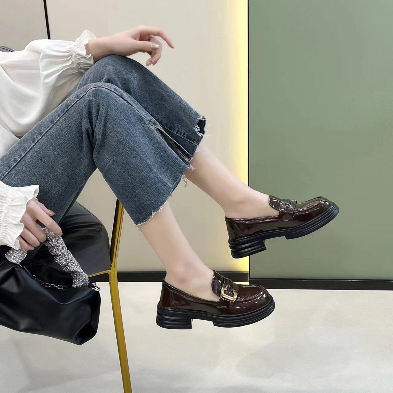 로퍼 여성 2024 년 봄과 가을 새로운 진짜 카우보이 빈티지 올 매치 두꺼운 영국 스타일 청키 힐 로리타 가죽 신발스토어 가기