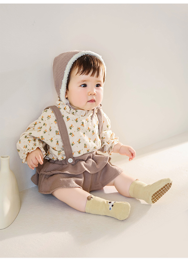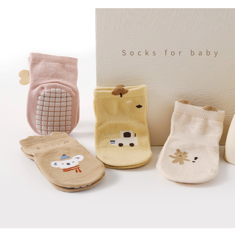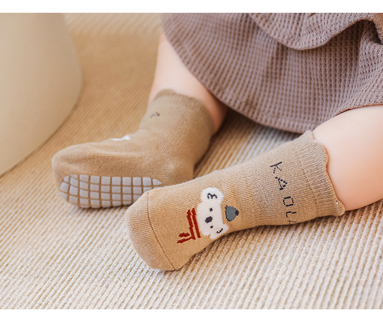가을과 겨울 뼈없는 아기 양말 면 아기와 어린 아이들 안티 슬립 바닥 양말 만화 중간 귀 대형 판 디스펜싱