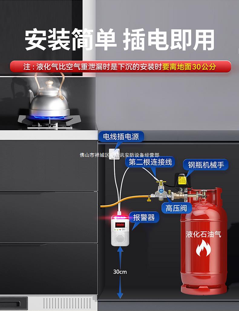 광동 가스 누출 경보 자동 차단 밸브 주방 케이터링 상업 액화 가스 가스 경보스토어 가기