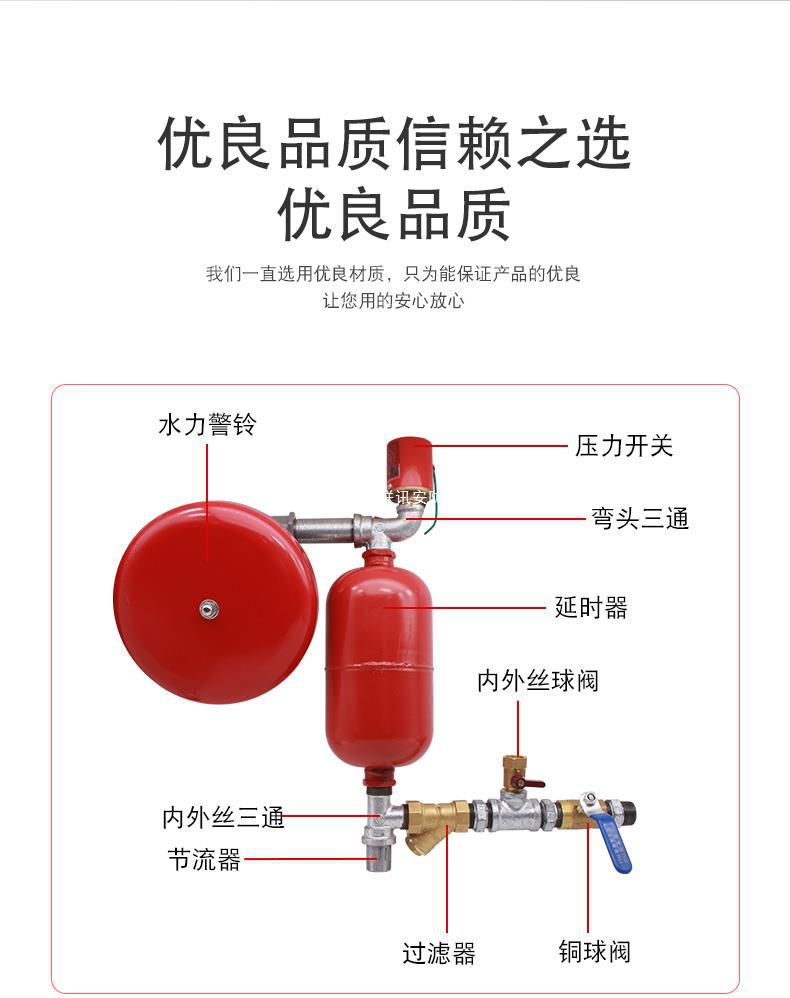 젖은 경보 밸브 피팅 압력 게이지 유압 경보 지연 압력 스위치 3 방향 고압 호스 팔꿈치