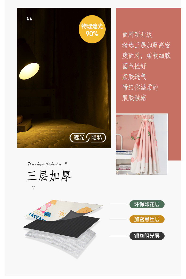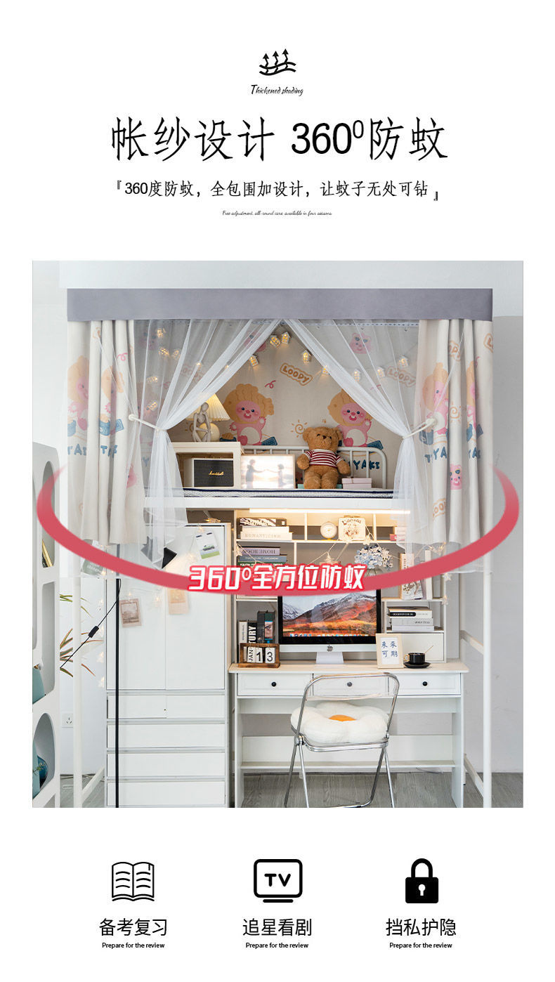 학생 기숙사 침대 커튼 강한 음영 두꺼운 상하 침대 여성 기숙사 귀여운 바람 입구 차단 헝겊 방지 안티프 침대 커튼